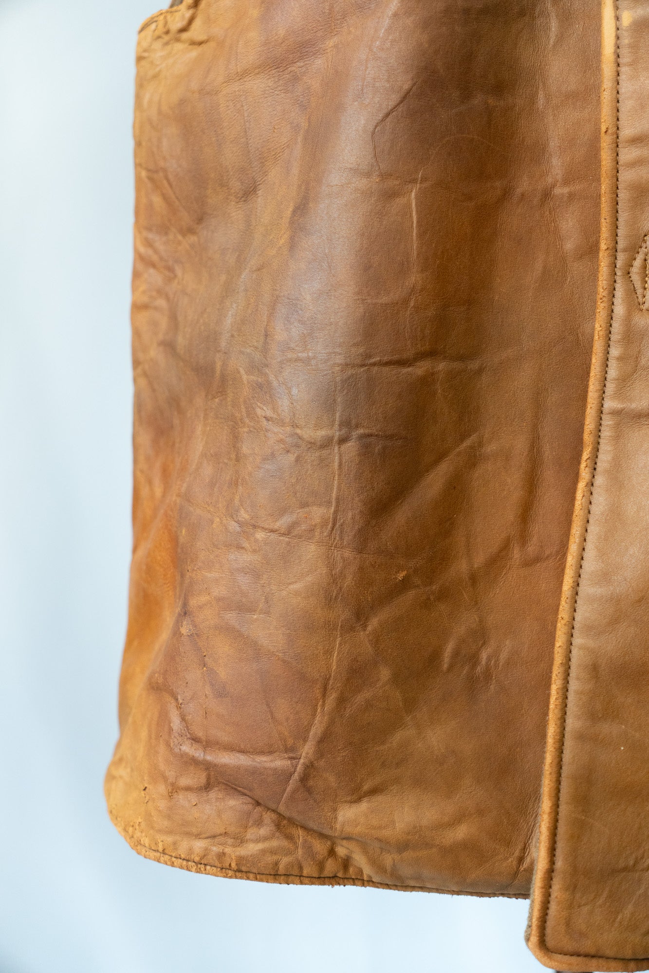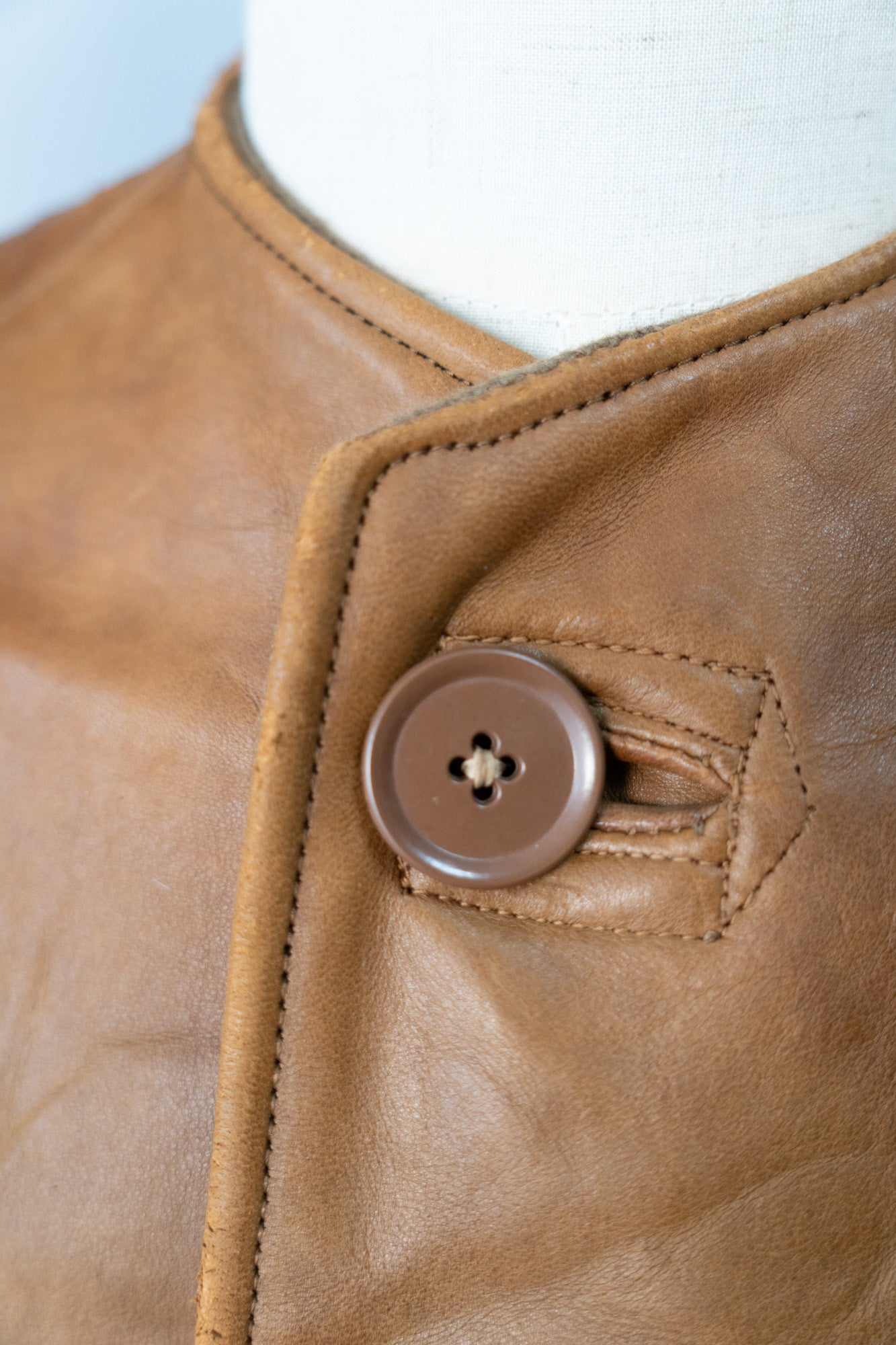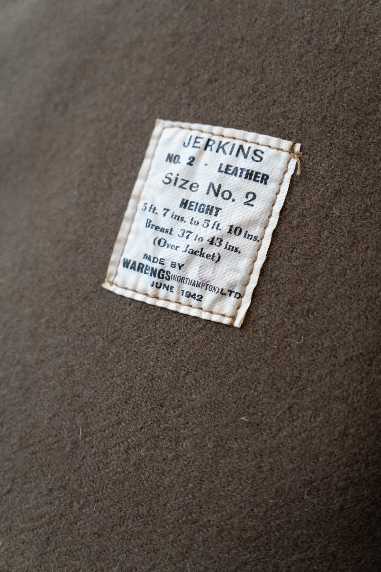 Sie ist länger geschnitten und hat breitere Schultern. Die Knopflochnaht ist ein charakteristisches Detail, das nur bei der britischen Armee zu finden ist und bei den Weste der US-Armee fehlt. Während dunkelbraune Exemplare weit verbreitet sind, besticht dieses Stück durch eine attraktive, seltene kamelfarbene Optik.