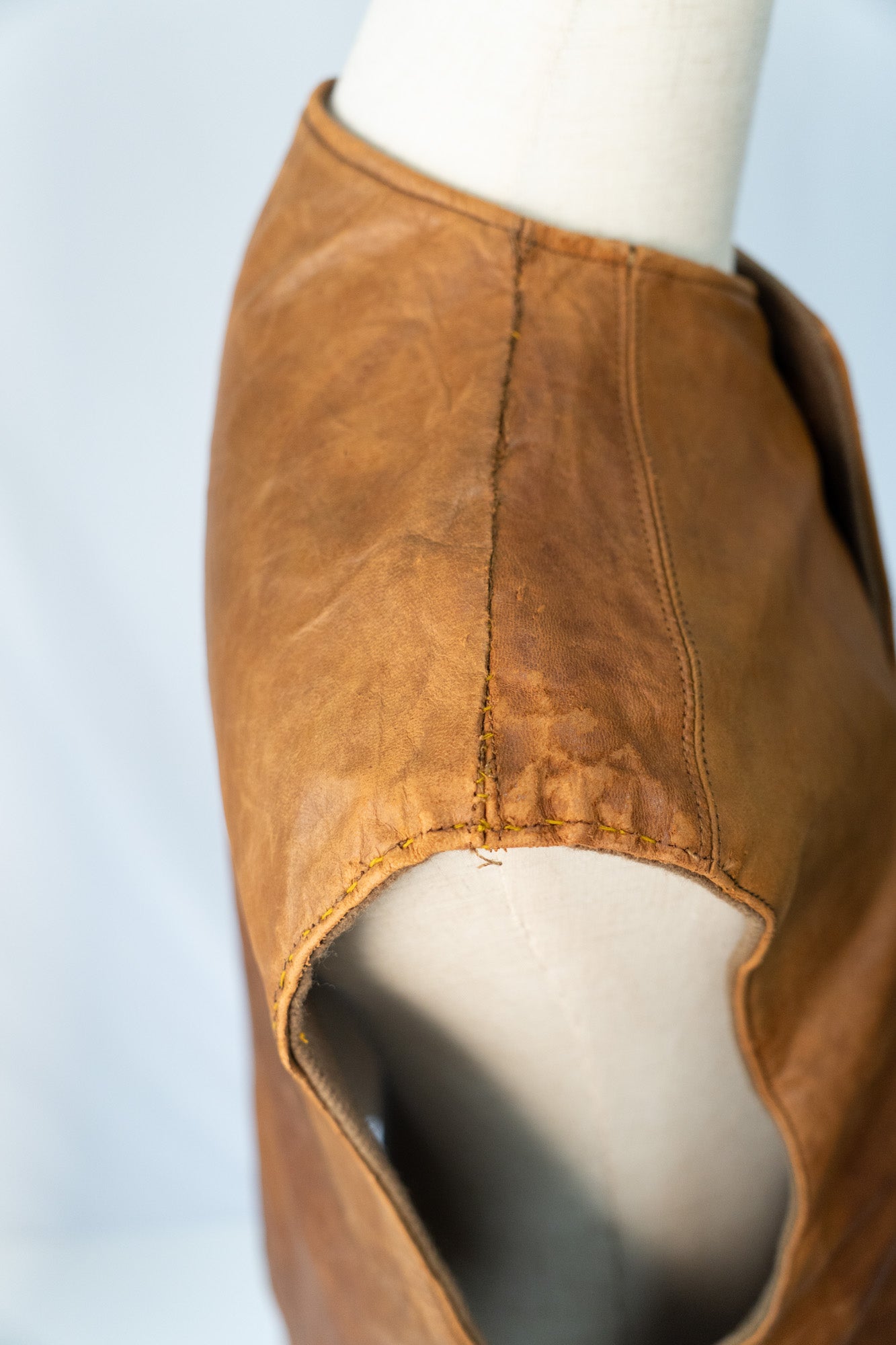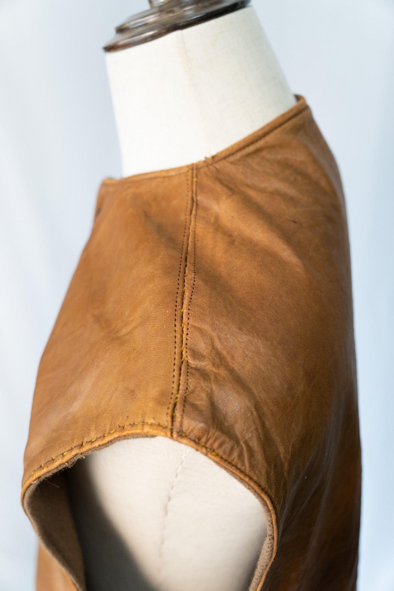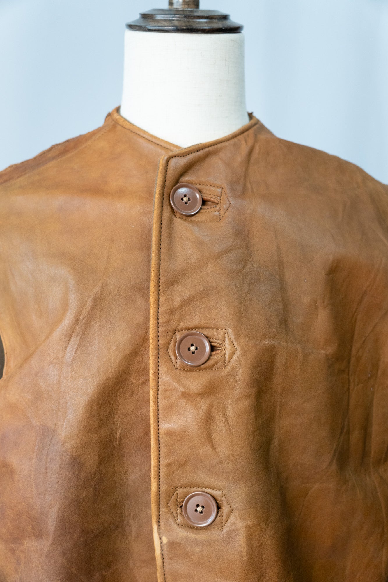 Sie ist länger geschnitten und hat breitere Schultern. Die Knopflochnaht ist ein charakteristisches Detail, das nur bei der britischen Armee zu finden ist und bei den Weste der US-Armee fehlt. Während dunkelbraune Exemplare weit verbreitet sind, besticht dieses Stück durch eine attraktive, seltene kamelfarbene Optik.