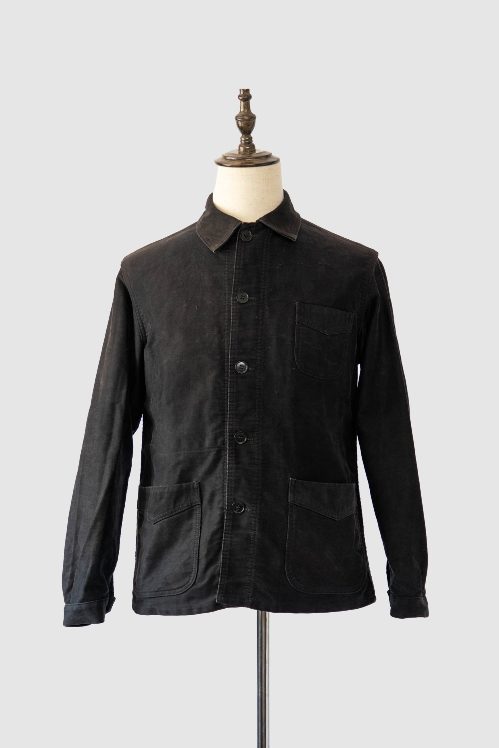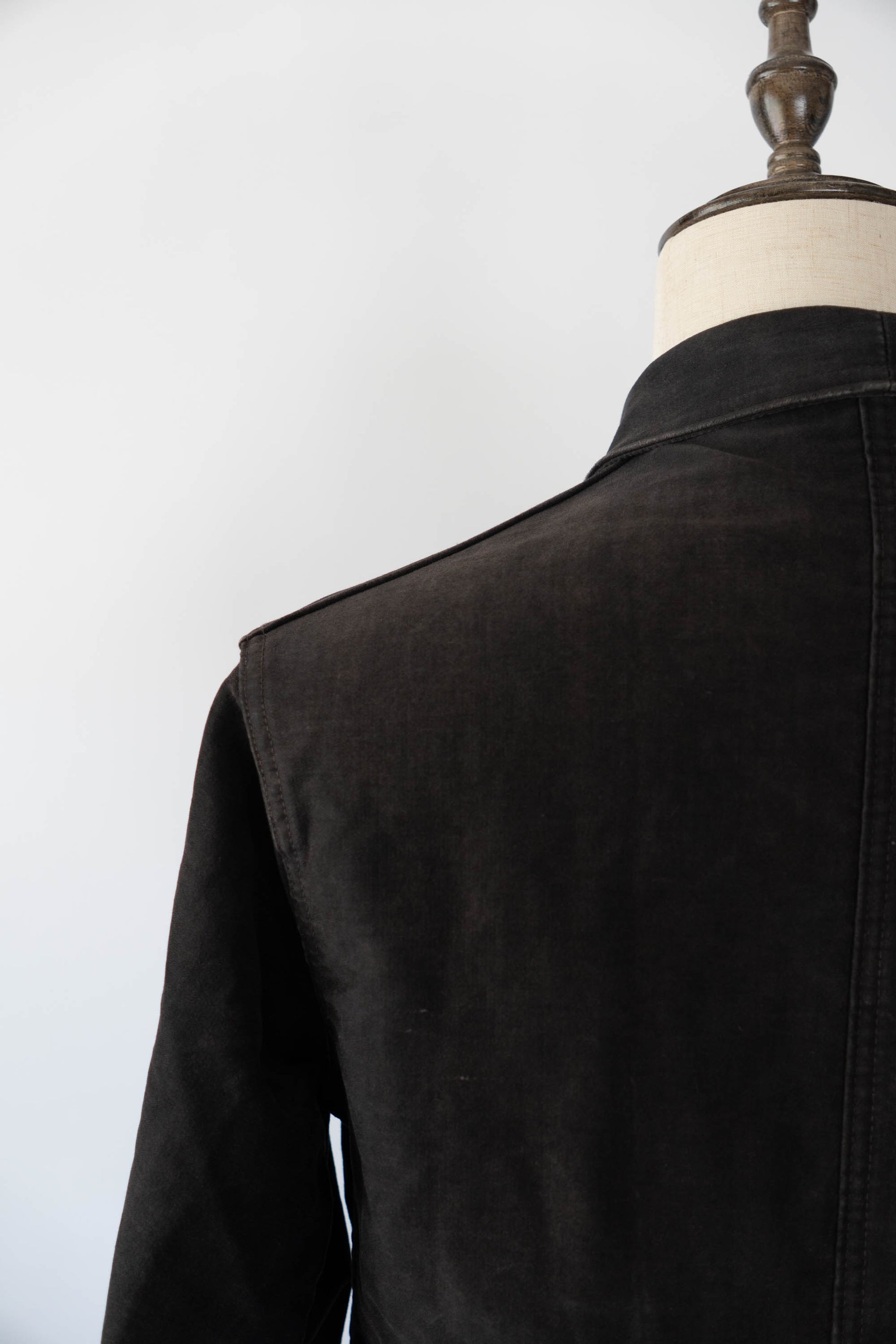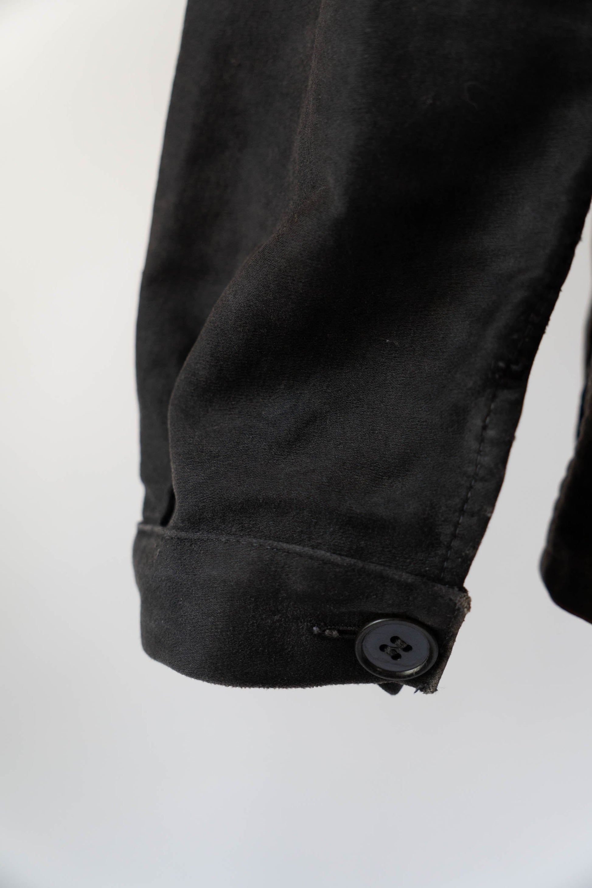 ~50er Jahre französische Arbeitsjacke aus schwarzem Moleskin „Le Mont St Michel”