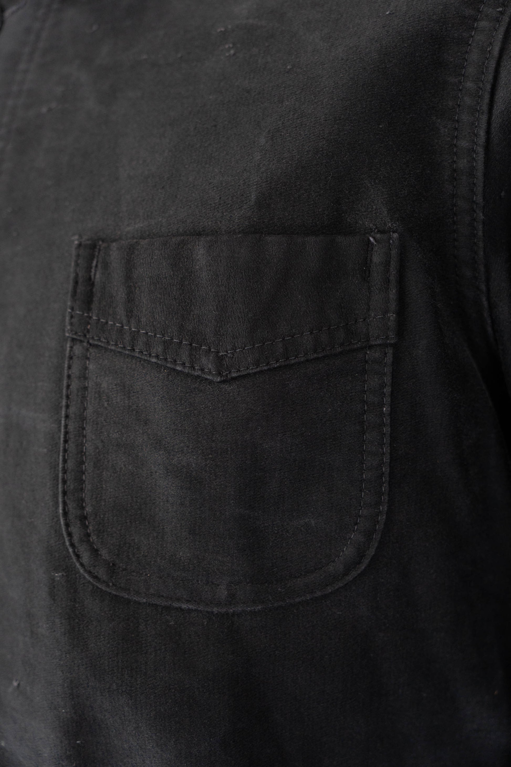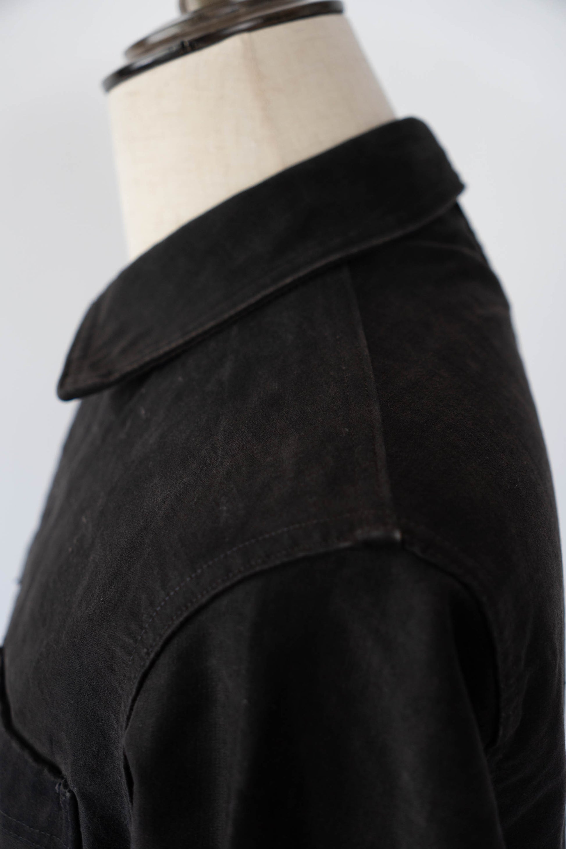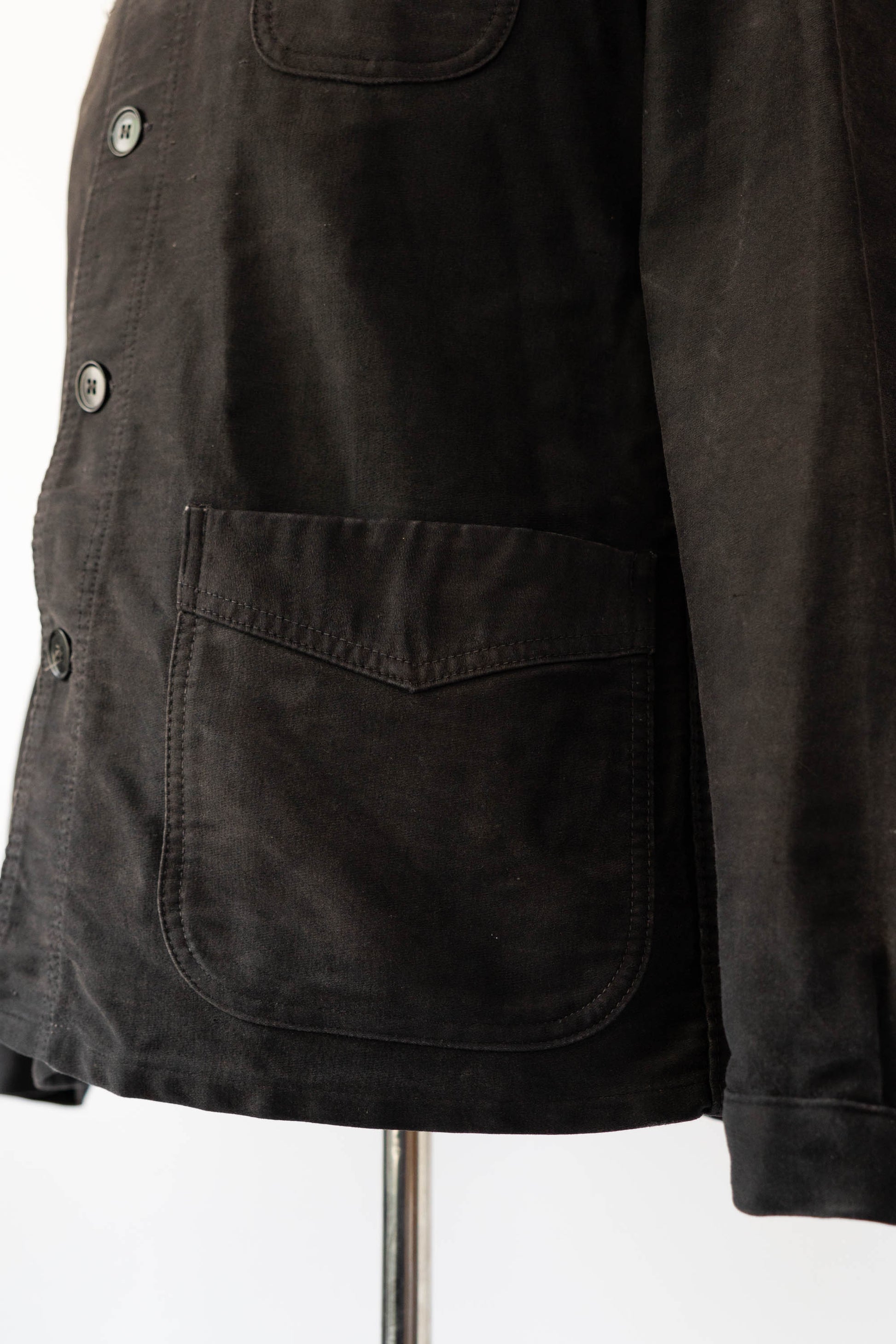 ~50er Jahre französische Arbeitsjacke aus schwarzem Moleskin „Le Mont St Michel”
