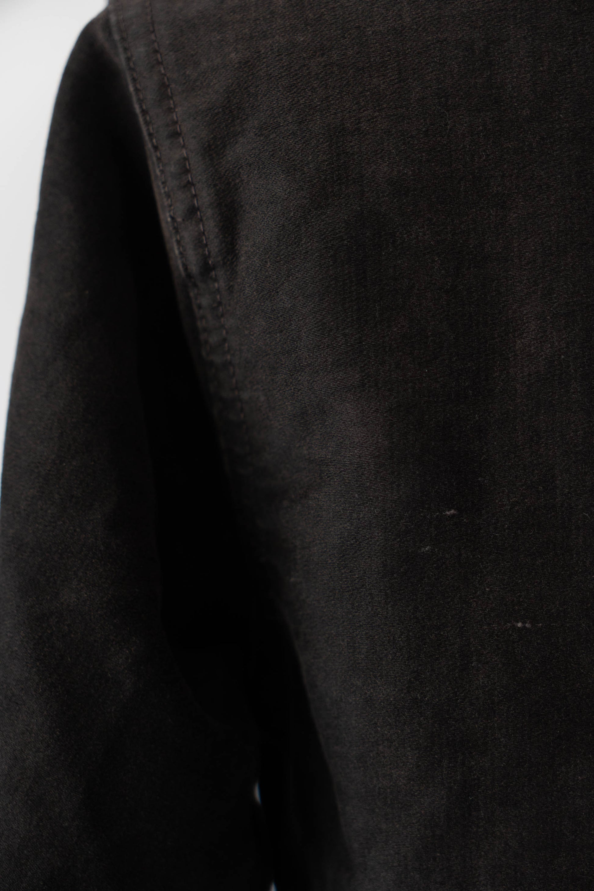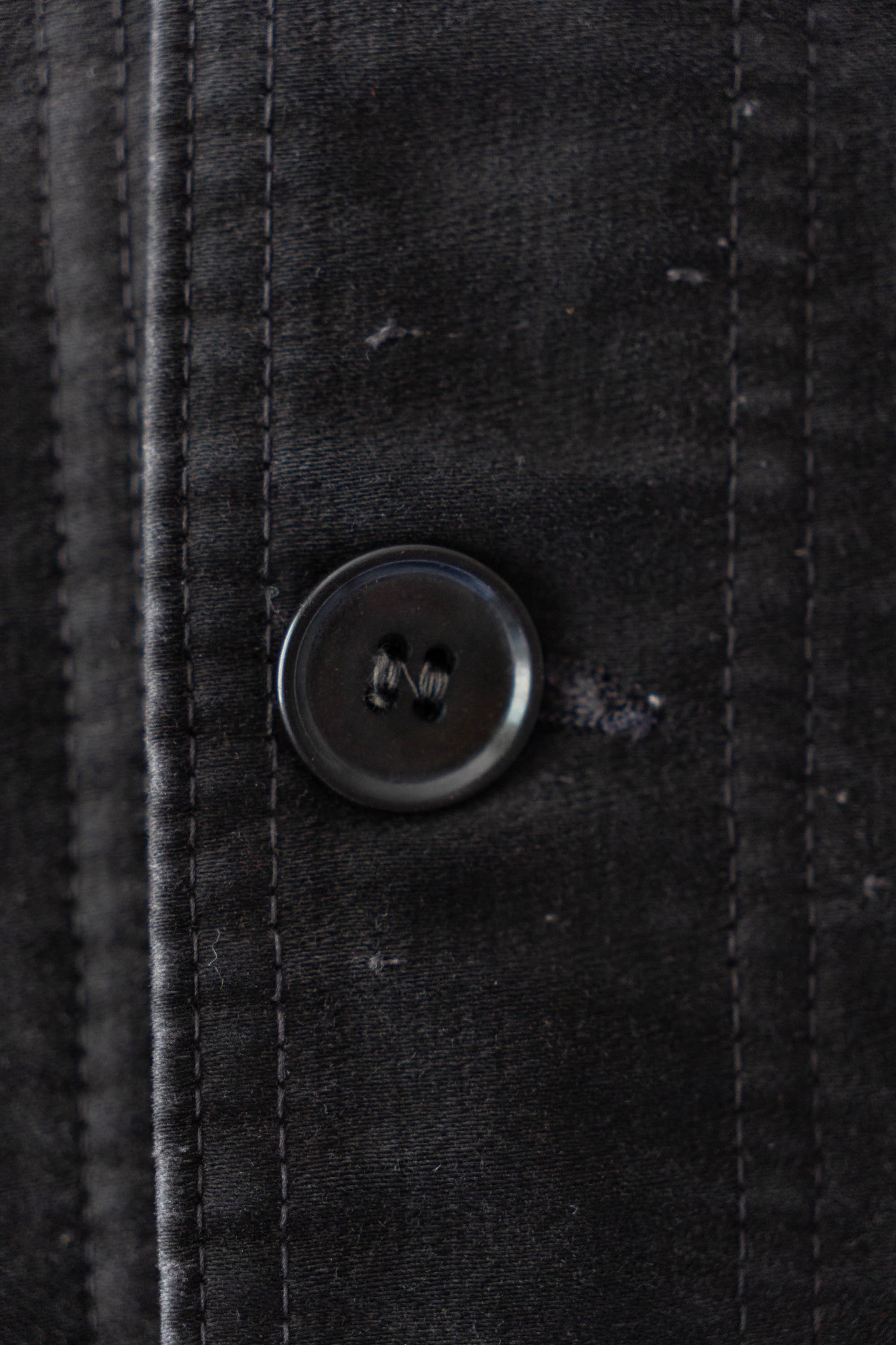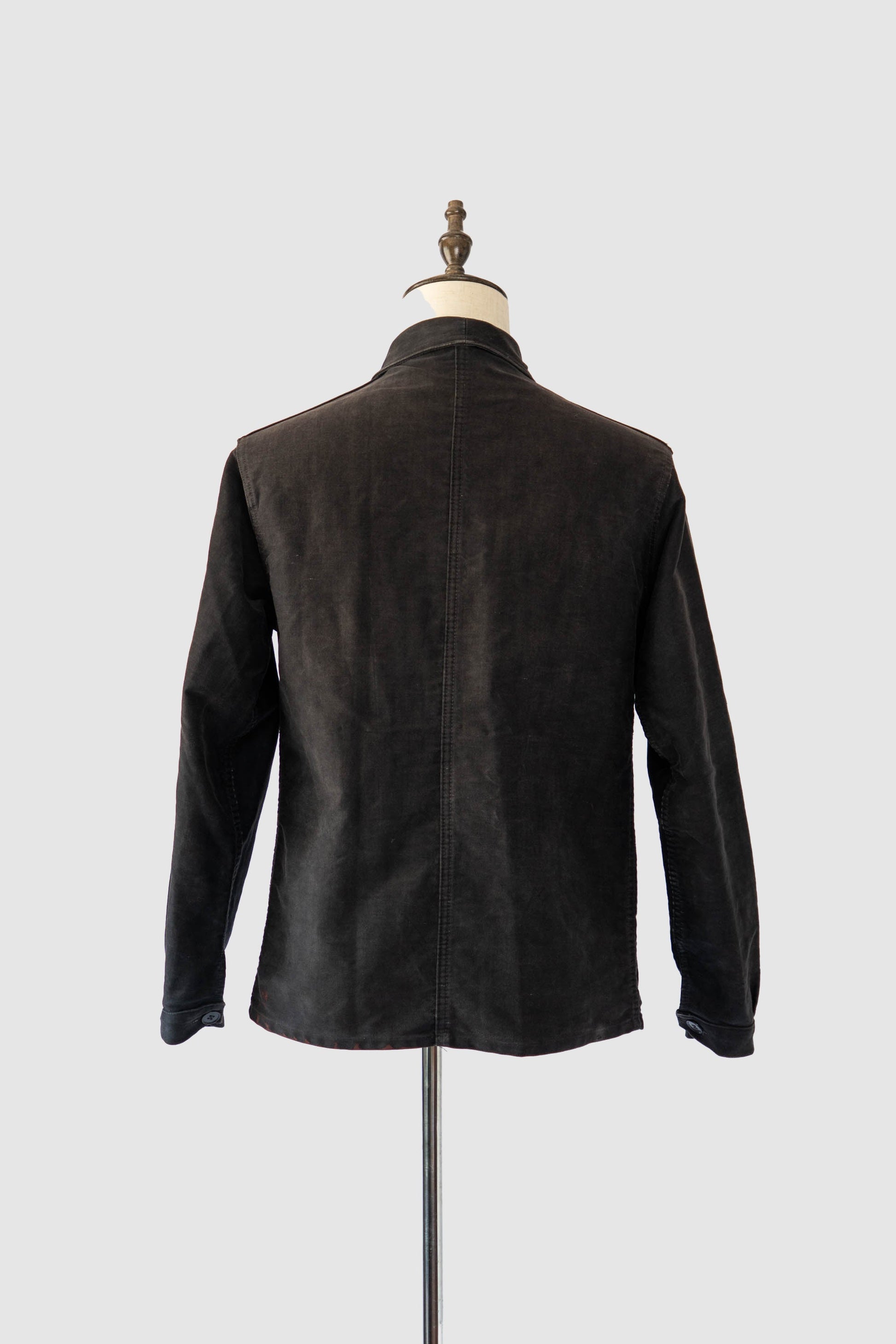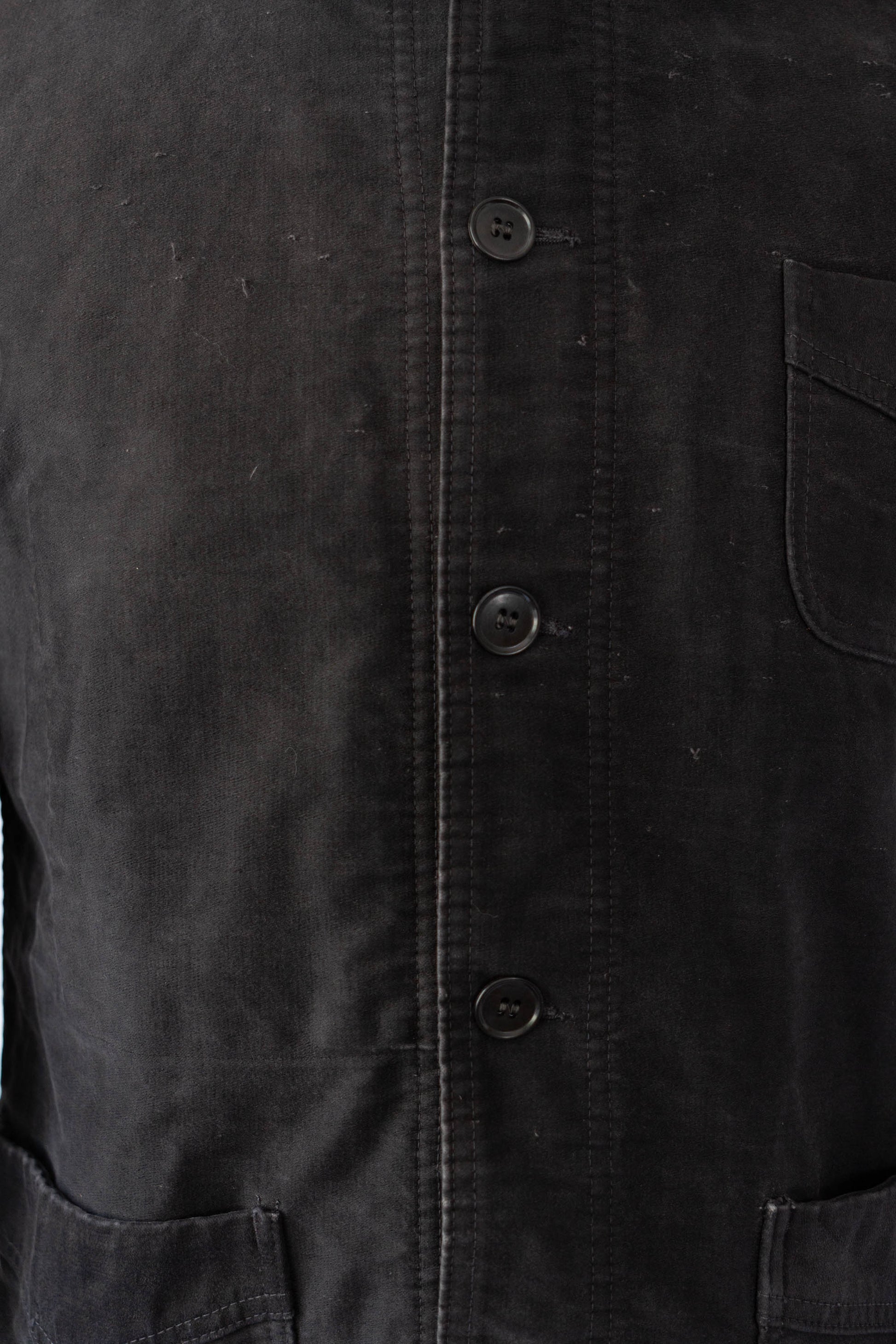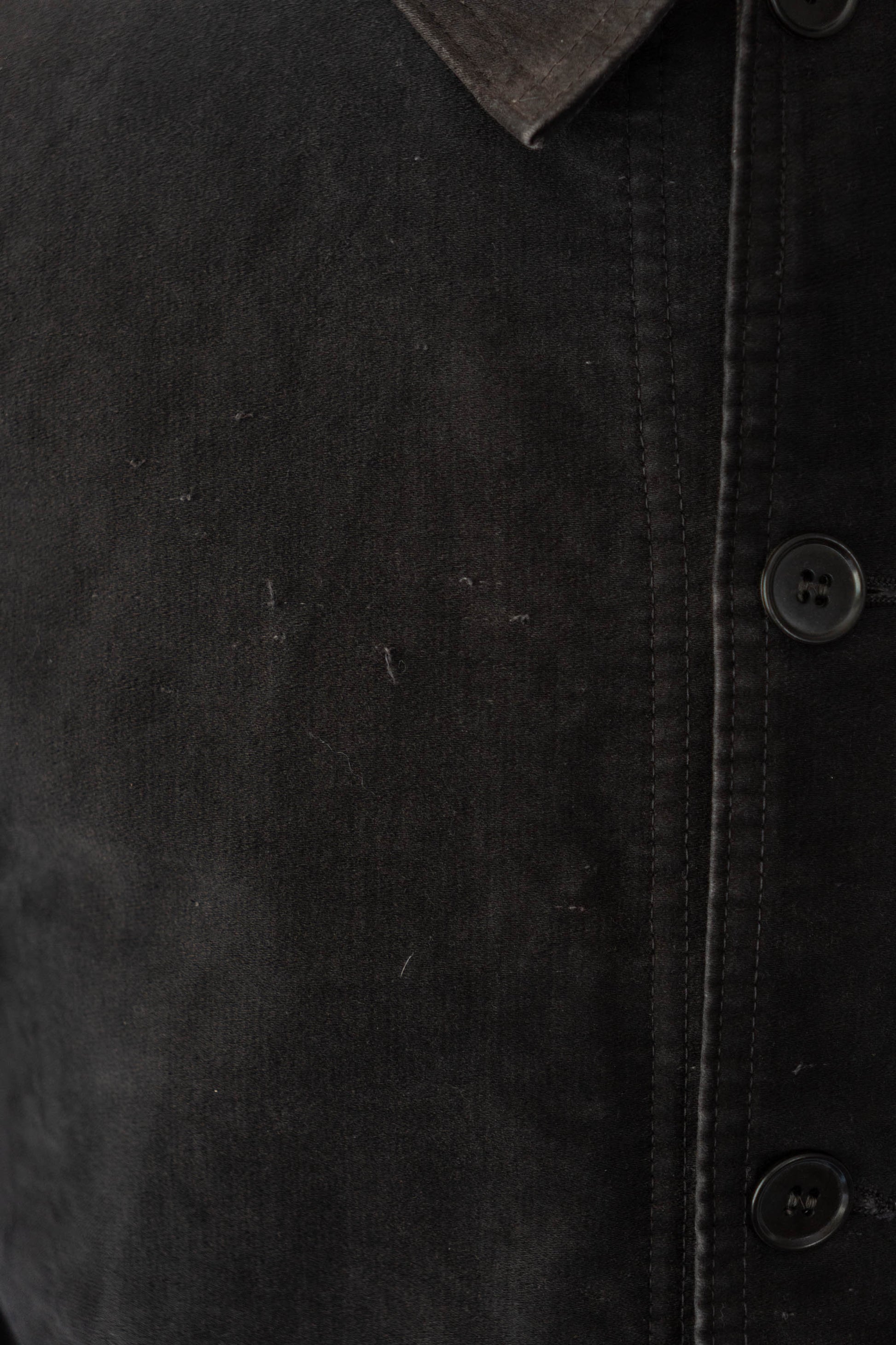 - Die weich abgenutzte, gebürstete Haptik des Moleskin-Stoffes bietet einen Charme, den moderne Stücke nicht haben. Der Zustand ist gut, ohne erkennbare größere Schäden. Bitte beachten Sie, dass die rote Farbspur am Saum und kleinere Webfehler charakteristische Abweichungen sind, die für Vintage-Artikel typisch sind.