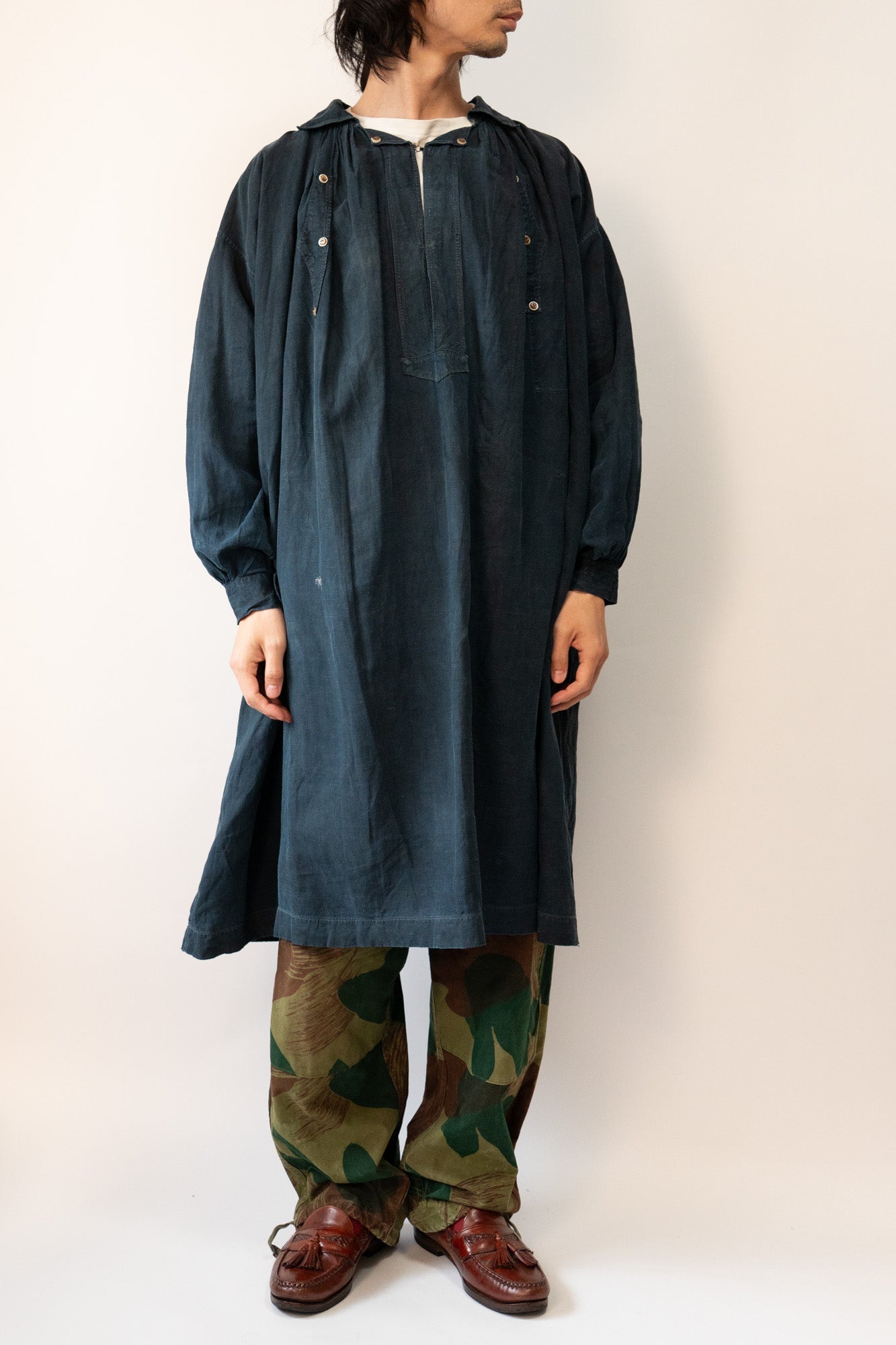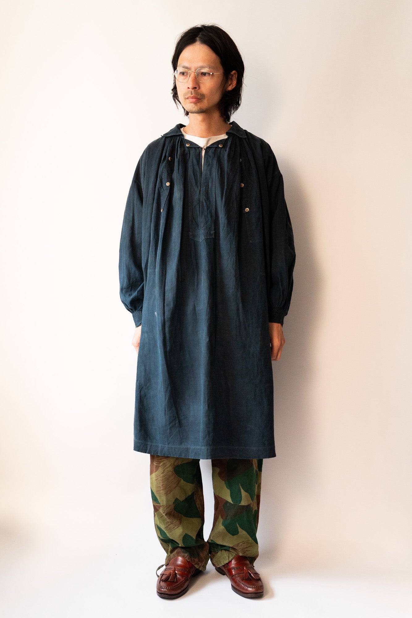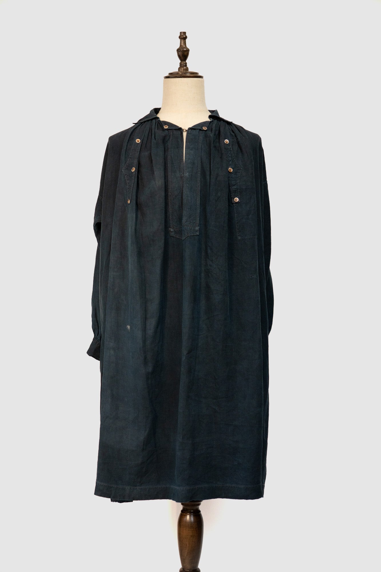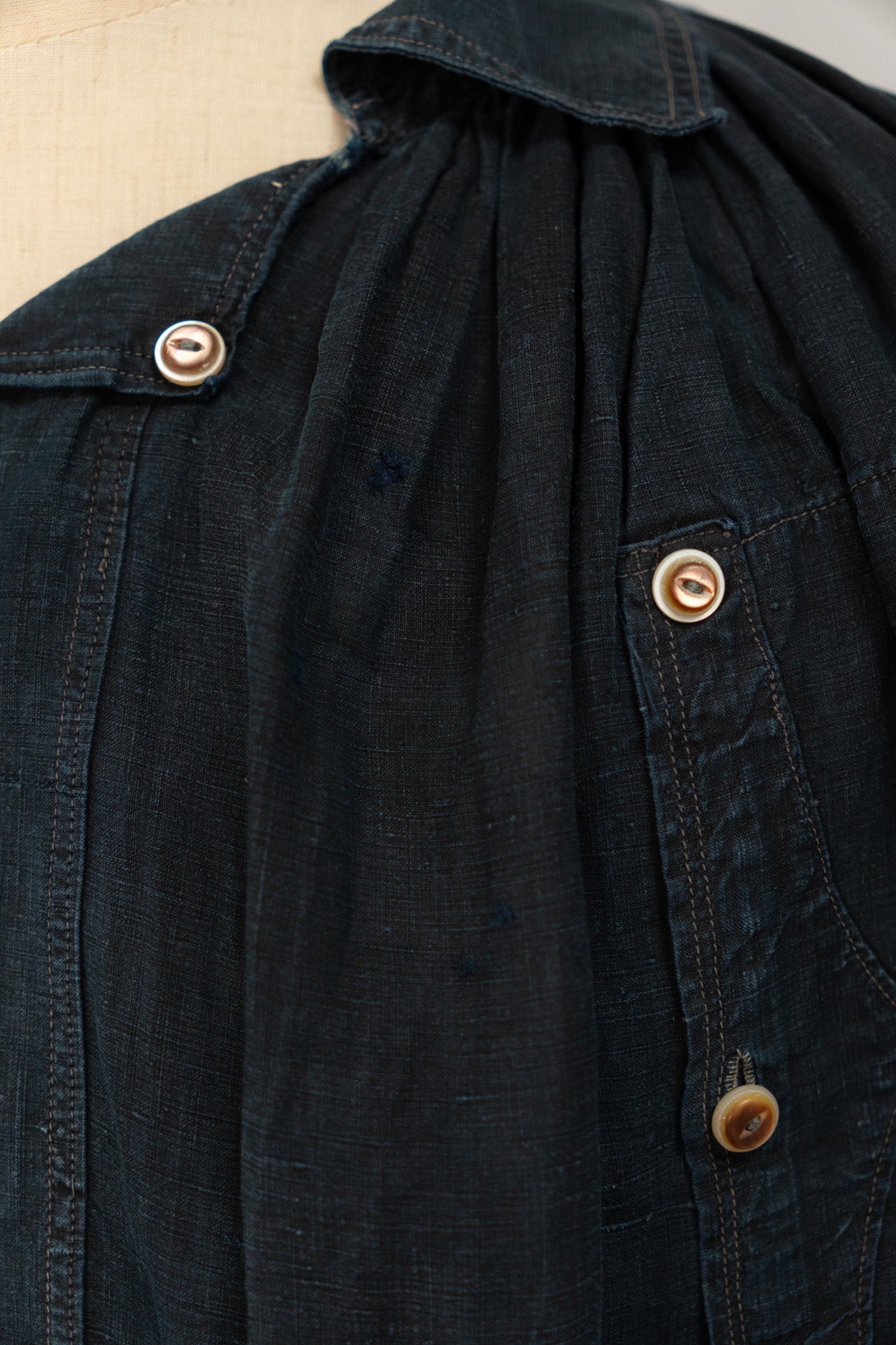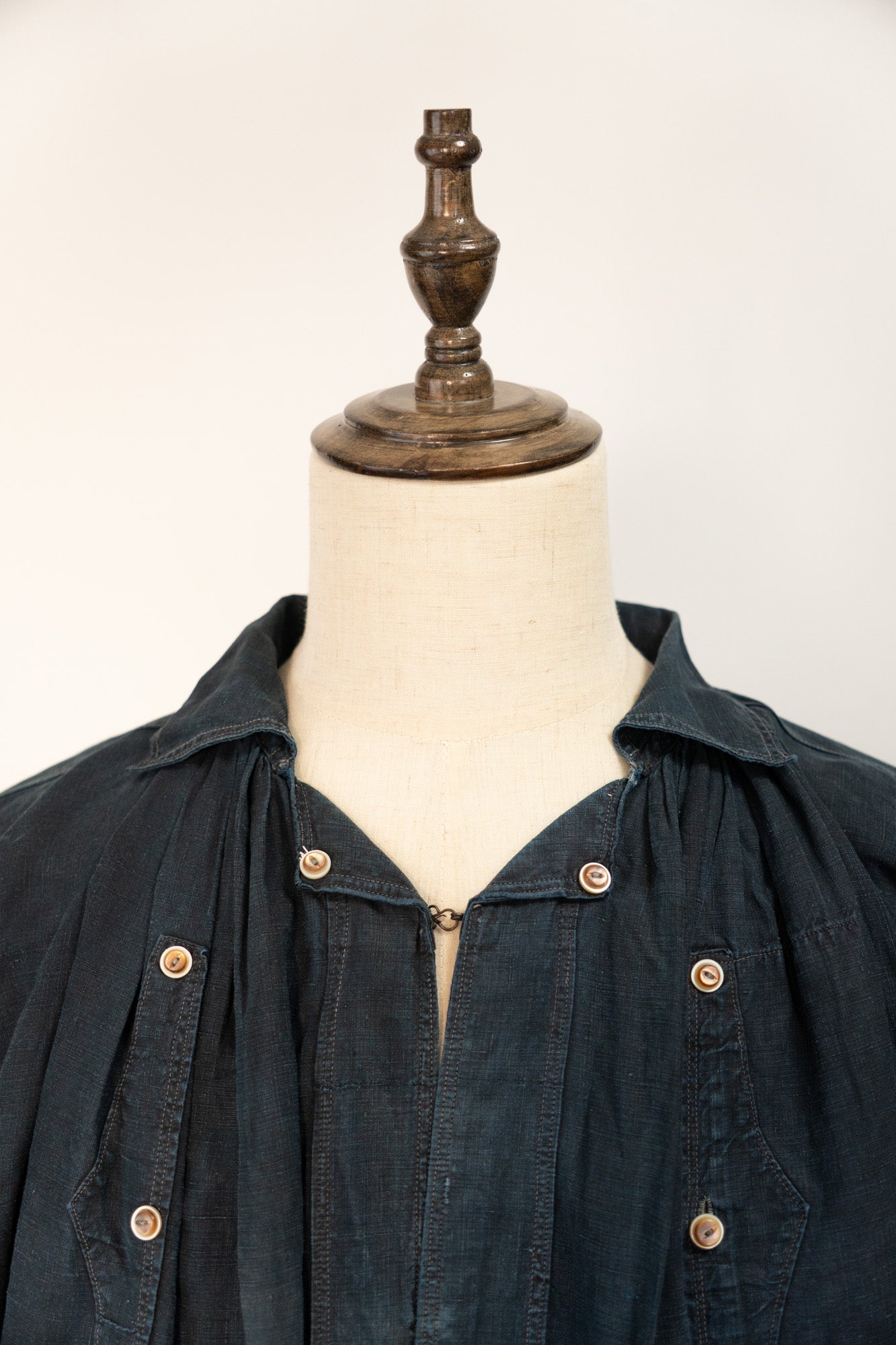 Geschätzter indigo-farbener Leinen-Biaude-Kittel aus den 1900er Jahren.