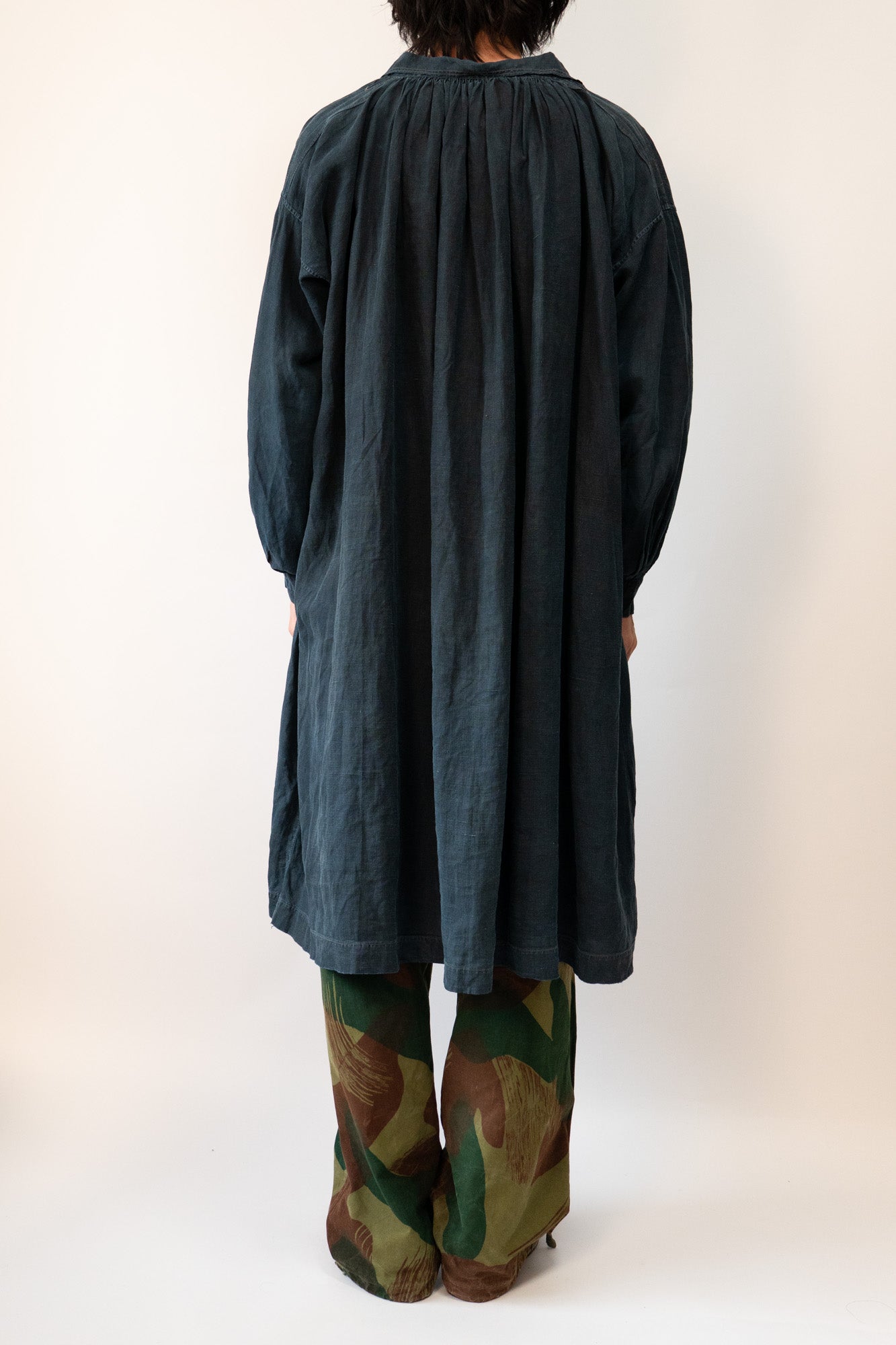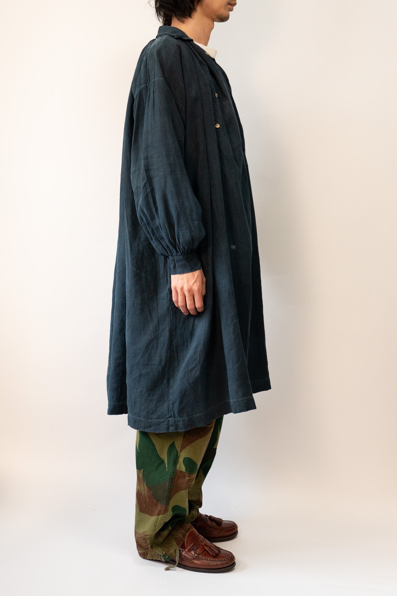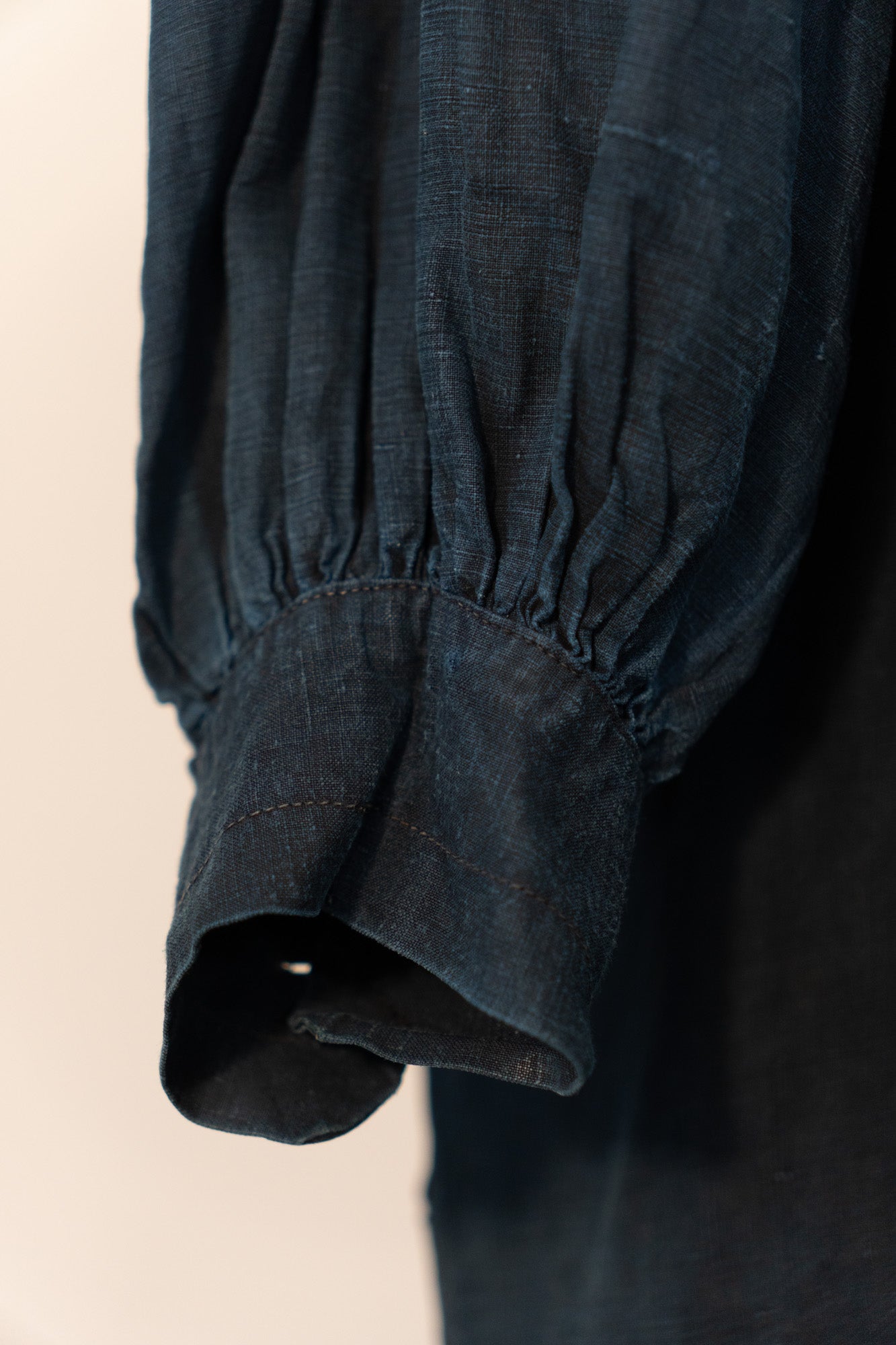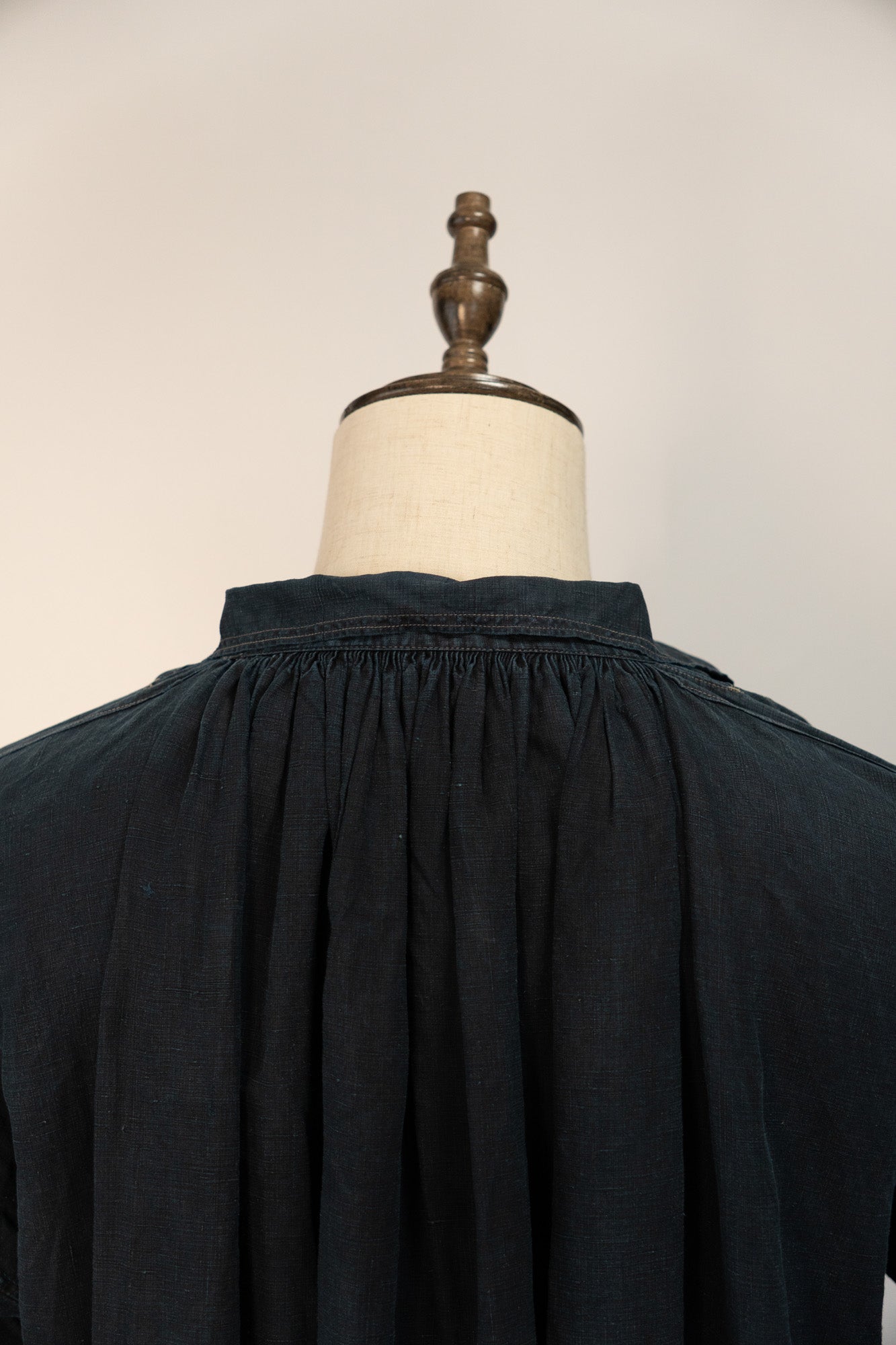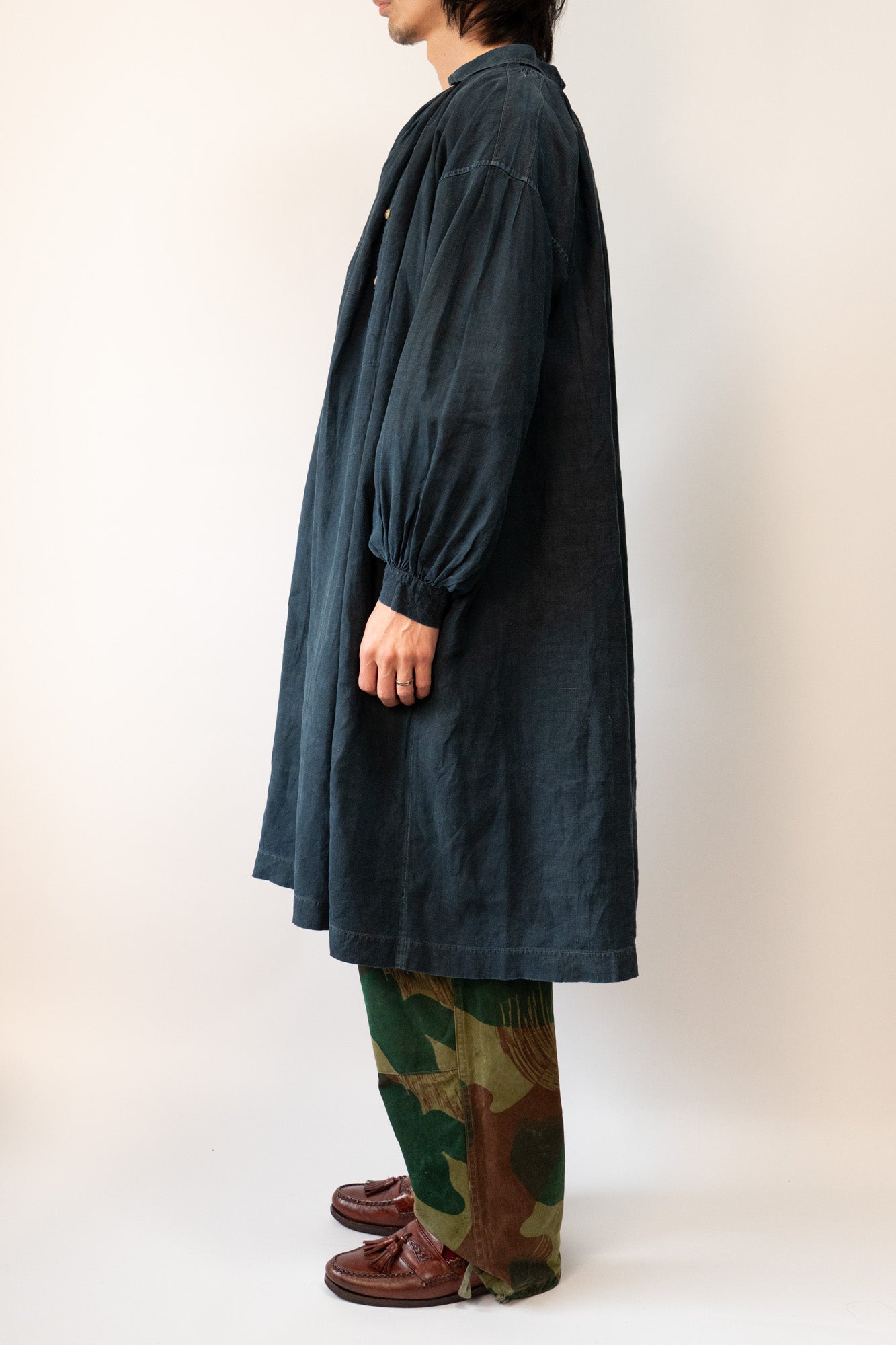 Geschätzter indigo-farbener Leinen-Biaude-Kittel aus den 1900er Jahren.