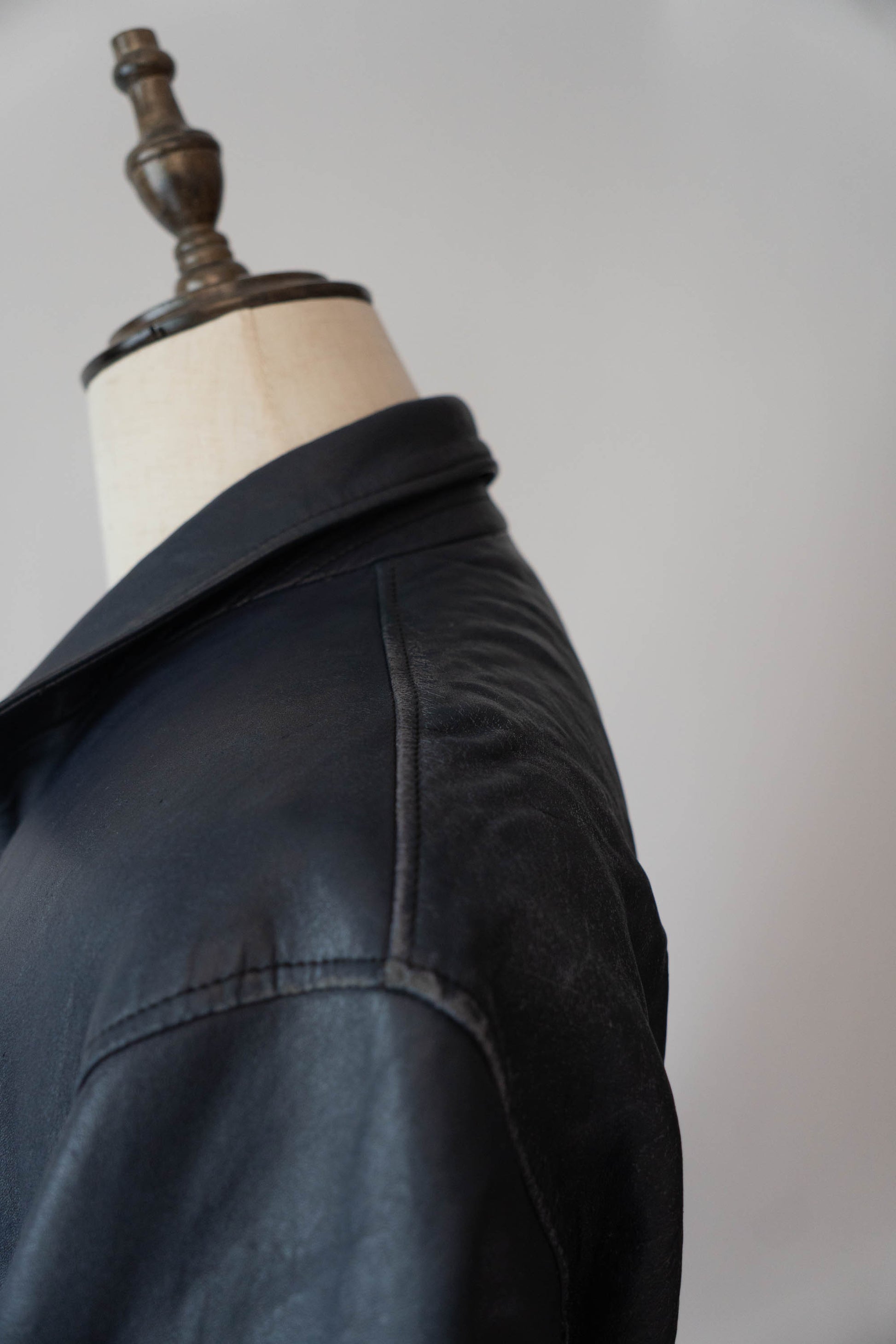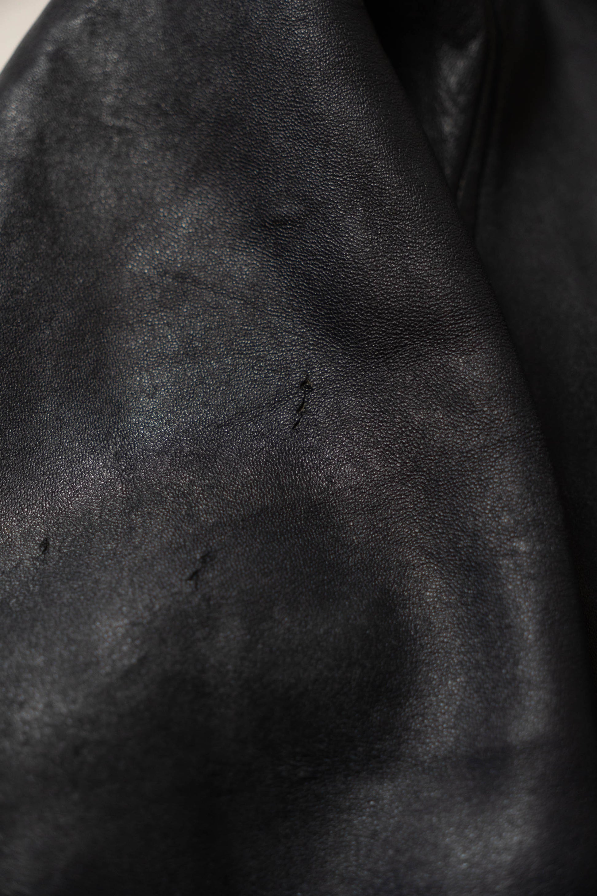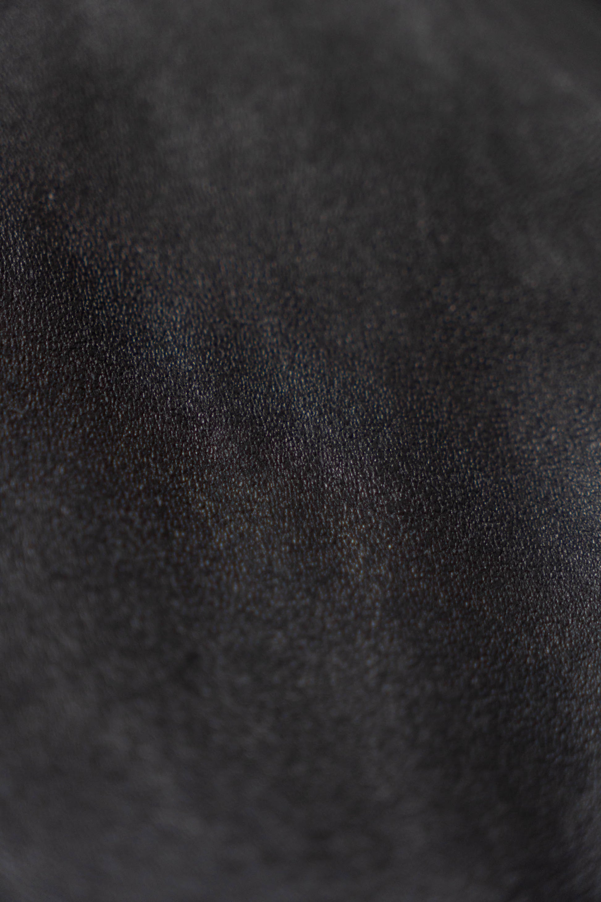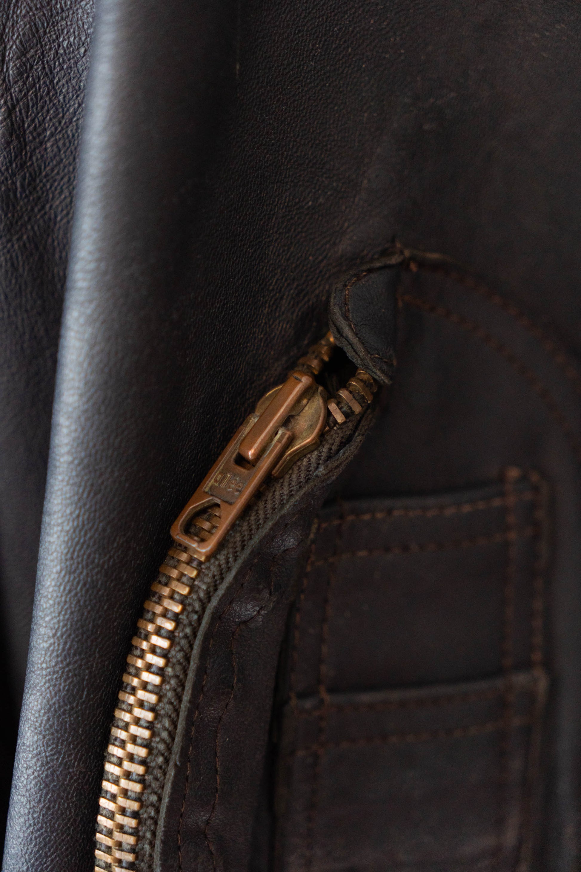 Das französische Schaffell ist leicht und geschmeidig, mit einer feinen Narbung und einem weichen, anschmiegsamen Griff. Es fehlt ihm die Steifheit und Schwere, die oft mit Lederjacken assoziiert wird, sodass es auch für diejenigen tragbar ist, die mit Vintage-Leder nicht vertraut sind.