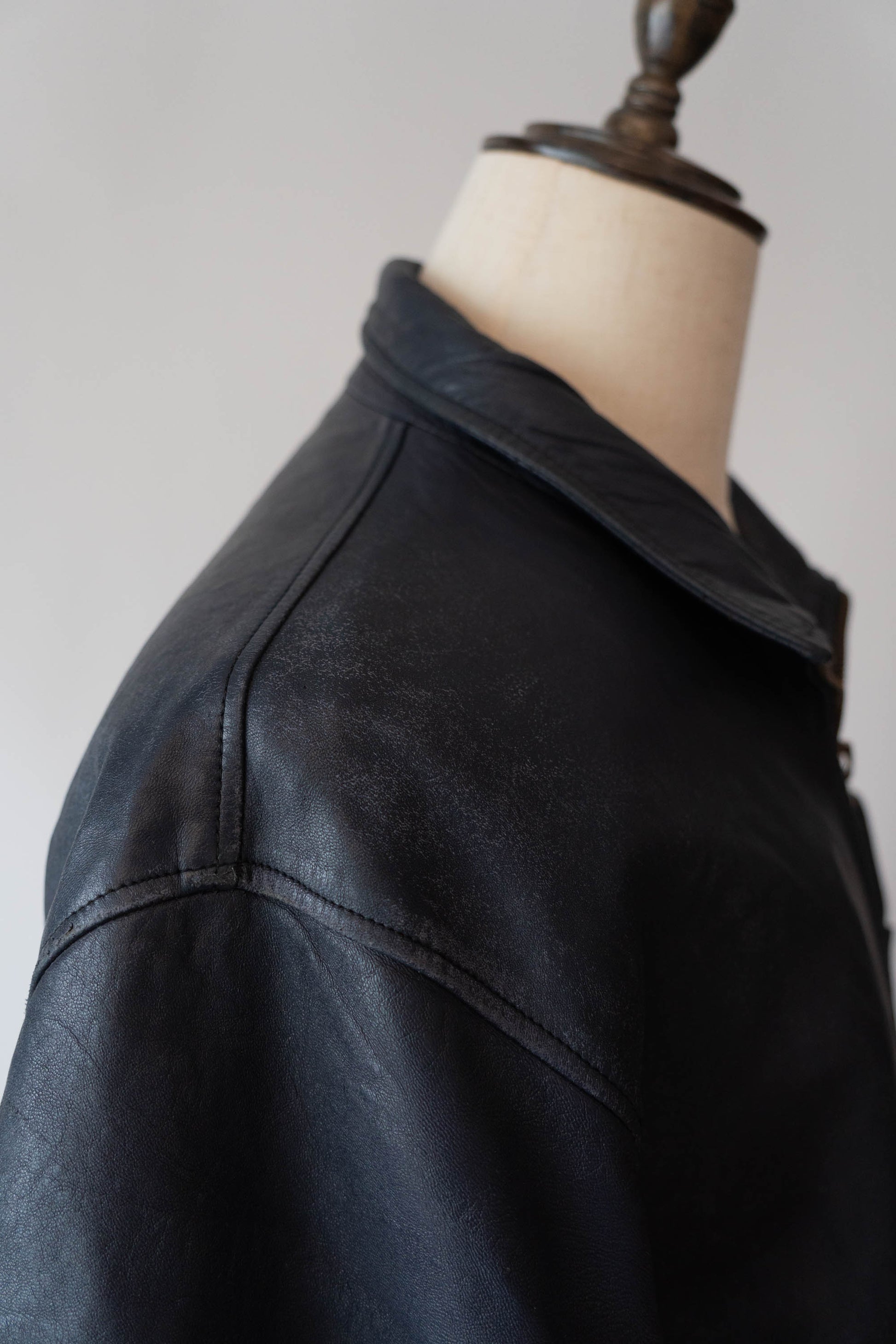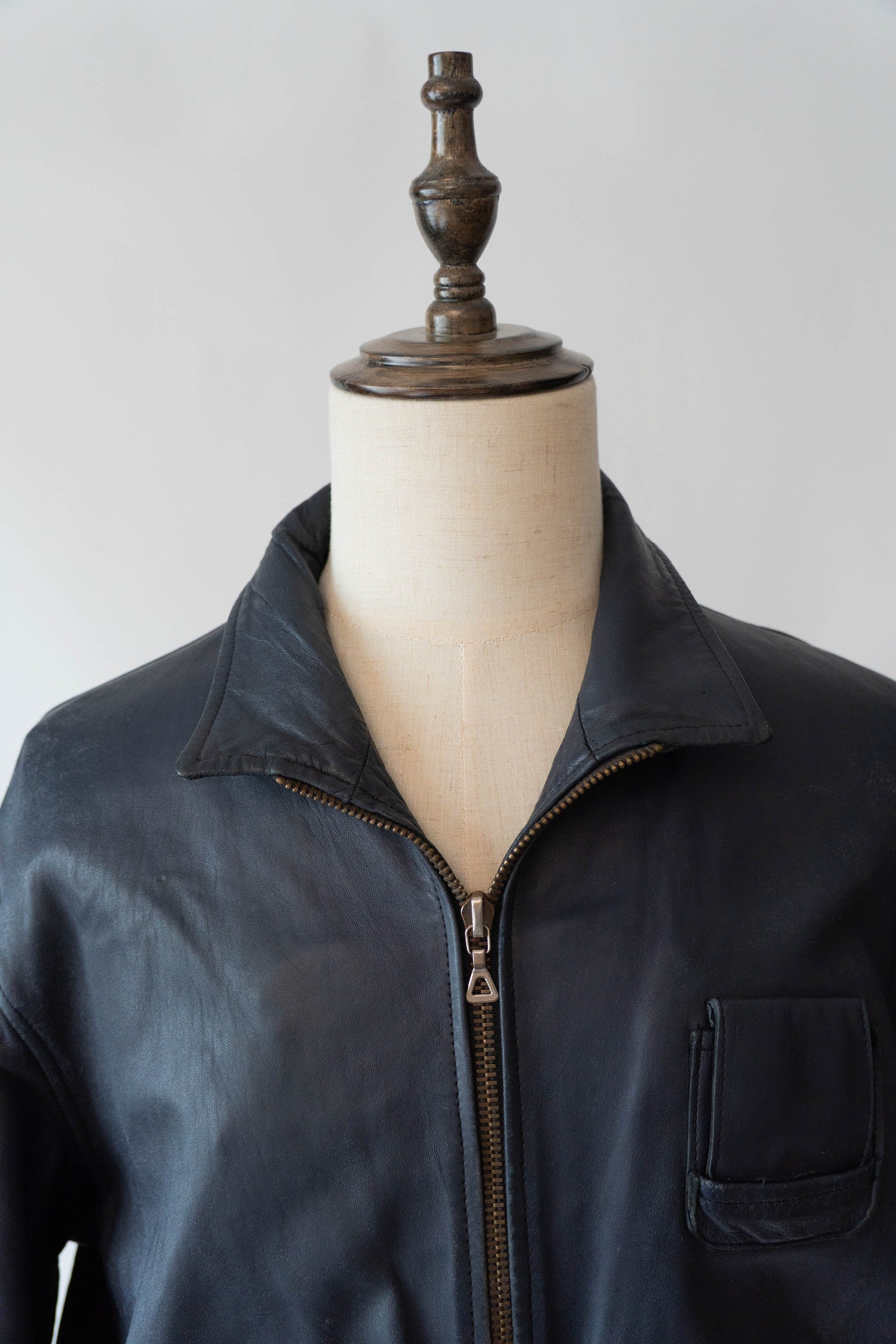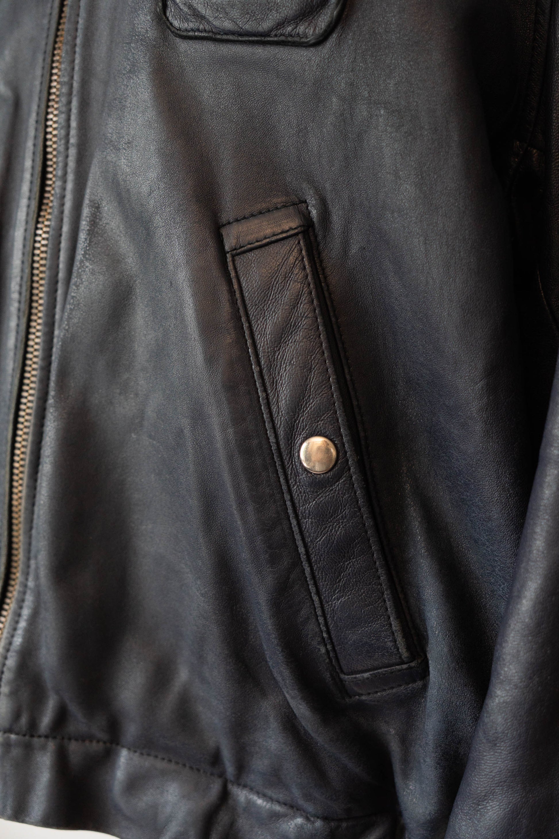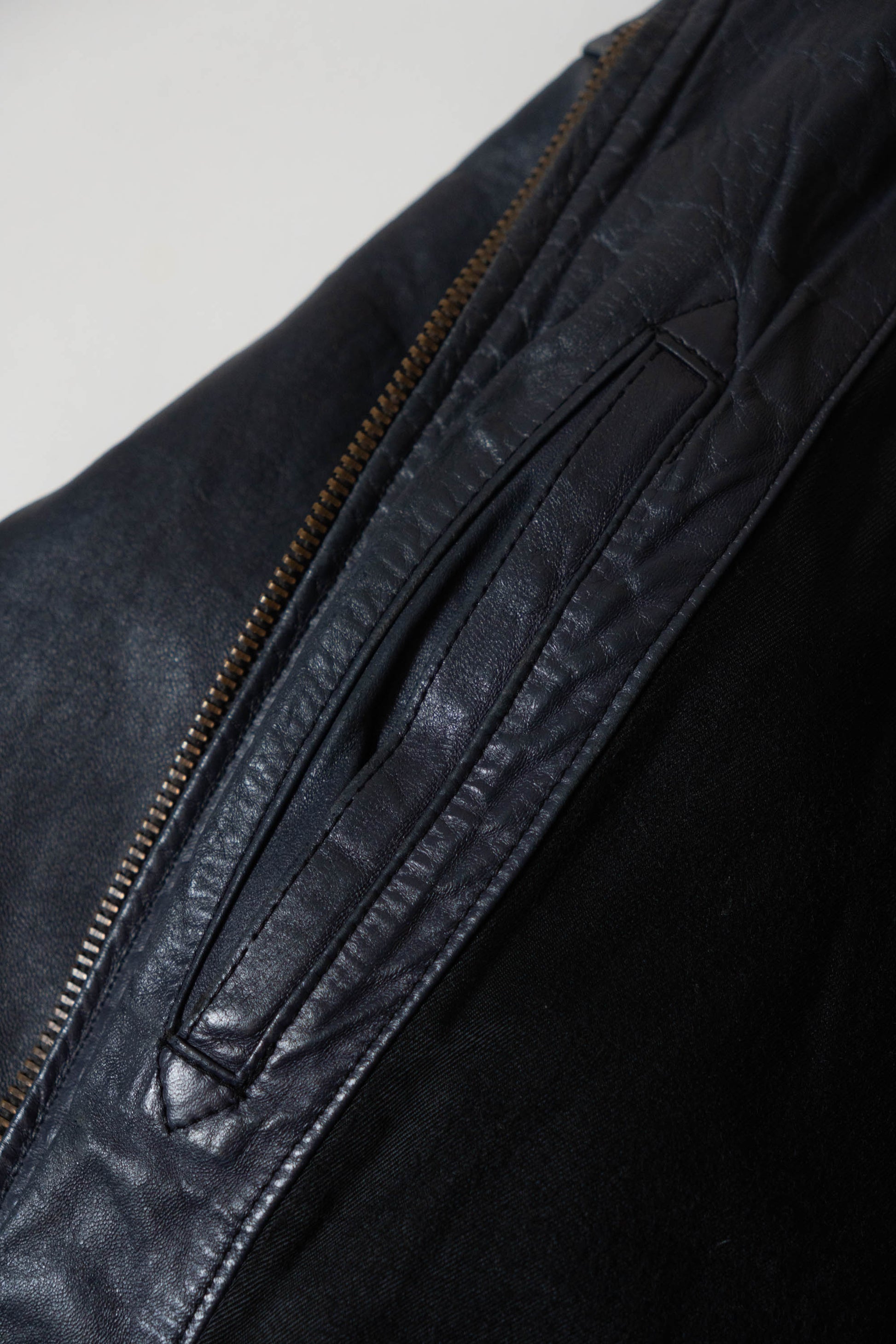 Das französische Schaffell ist leicht und geschmeidig, mit einer feinen Narbung und einem weichen, anschmiegsamen Griff. Es fehlt ihm die Steifheit und Schwere, die oft mit Lederjacken assoziiert wird, sodass es auch für diejenigen tragbar ist, die mit Vintage-Leder nicht vertraut sind.