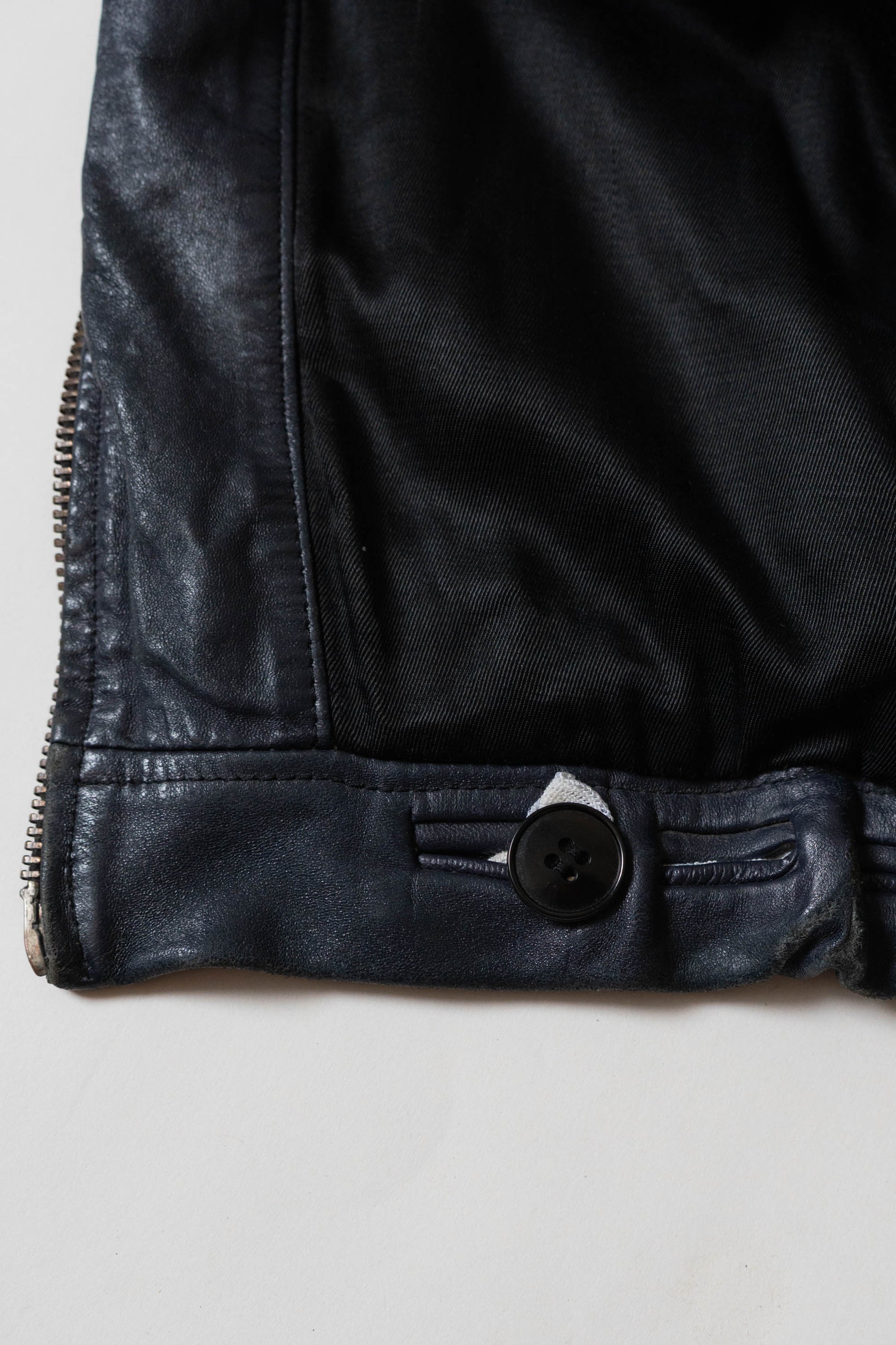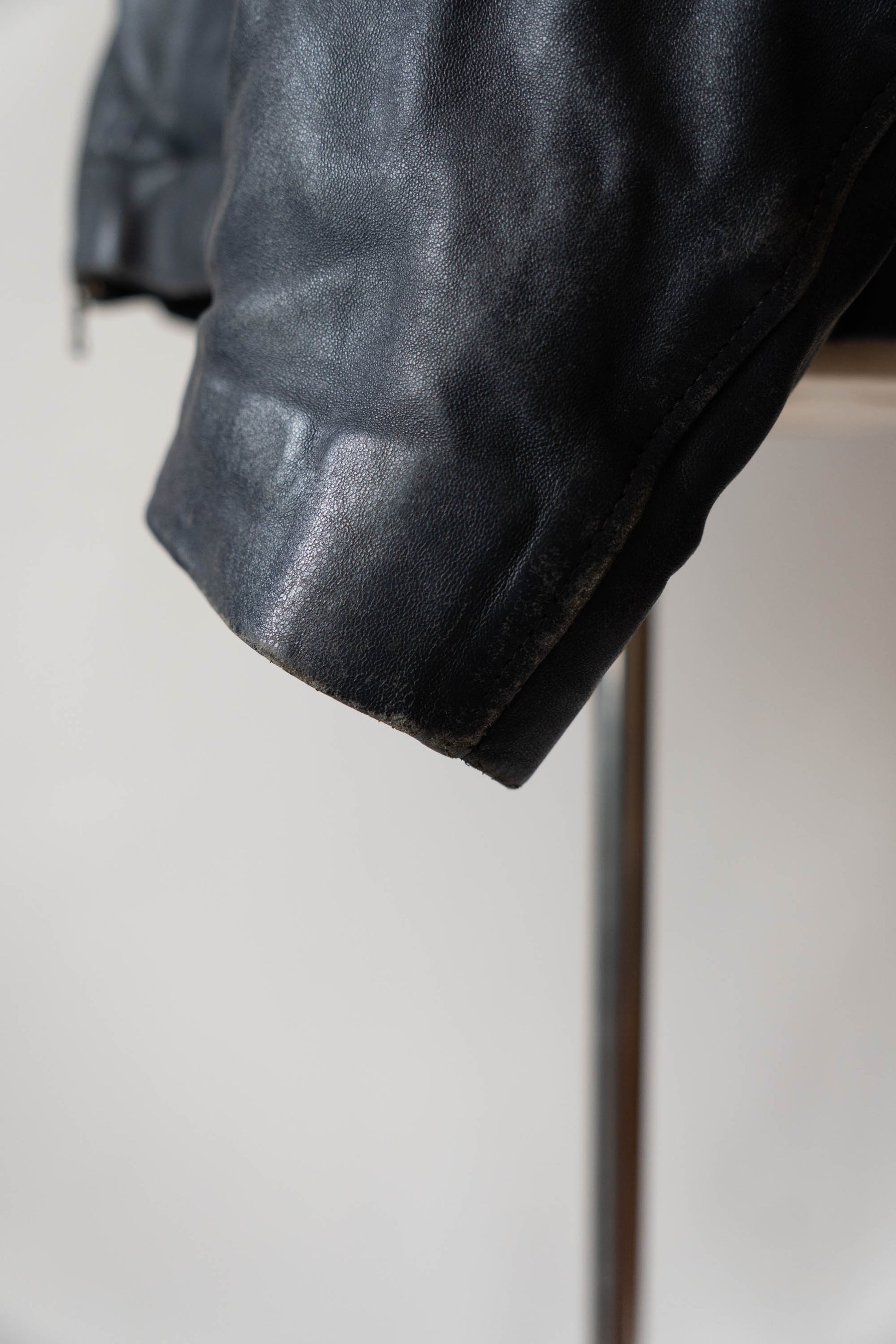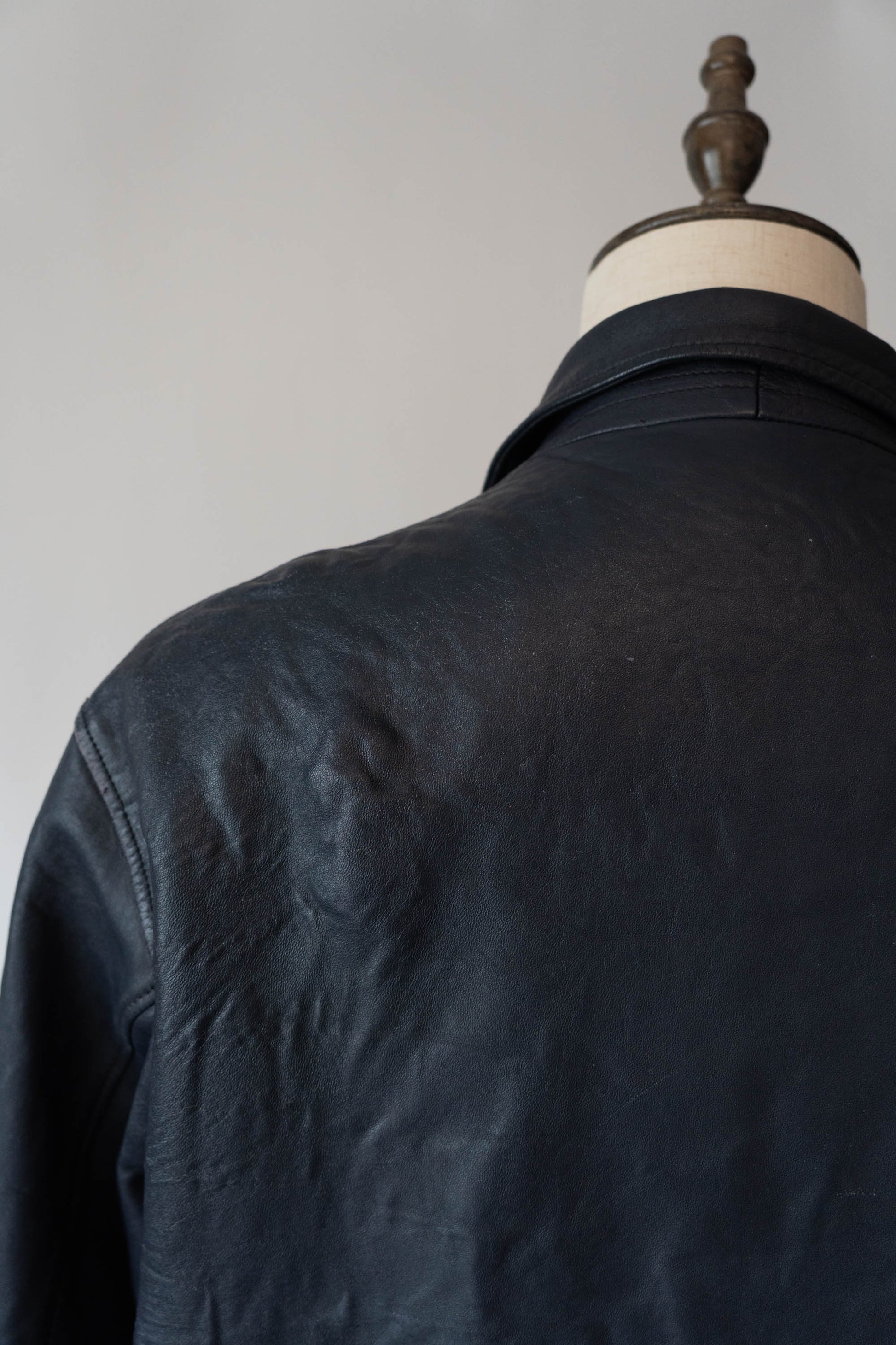 Der Reißverschluss verfügt über einen Doppelschieber mit einer dreieckigen, ausgeschnittenen Zuglasche, wie sie häufig bei französischen Militärartikeln aus dieser Zeit zu finden ist. Diese Form wird auch häufig bei Éclair-Reißverschlüssen verwendet. Unmarkierte Typen wie dieser sind eine Variante, die bei in Frankreich hergestellten Lederjacken und einigen Militärartikeln aus derselben Zeit zu finden ist. Obwohl es Unterschiede in der Markierung und der Form des Schiebers gibt, sind die Funktionalität und die Benutzerfreundlichkeit gleichermaßen hervorragend. Der innere Kragen trägt den Stempel „ETCA”. Dieses Prüfzeichen zeigt die Zulassung durch die Bekleidungsbehörde der französischen Luftwaffe an und bedeutet, dass die offiziellen Ausrüstungsstandards erfüllt sind. Bei diesem Artikel handelt es sich um ein originales Vintage-Stück, das tatsächlich als offizielle Ausgabe an das französische Militär ausgegeben wurde. Es ist ein hervorragendes Exemplar, das die praktische funktionale Schönheit und den modischen Reiz von Militärbekleidung mit der Qualität von französischem Leder verbindet.