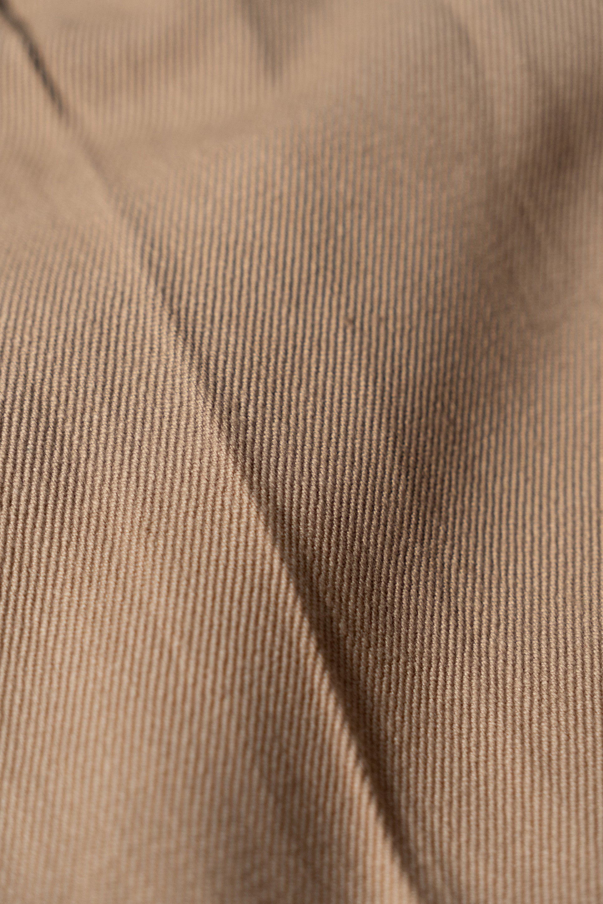 The material is a cotton twill fabric that feels good against the skin. The fabric becomes softer and more versatile with each wear. The color is a classy beige that is unique to French military wear.