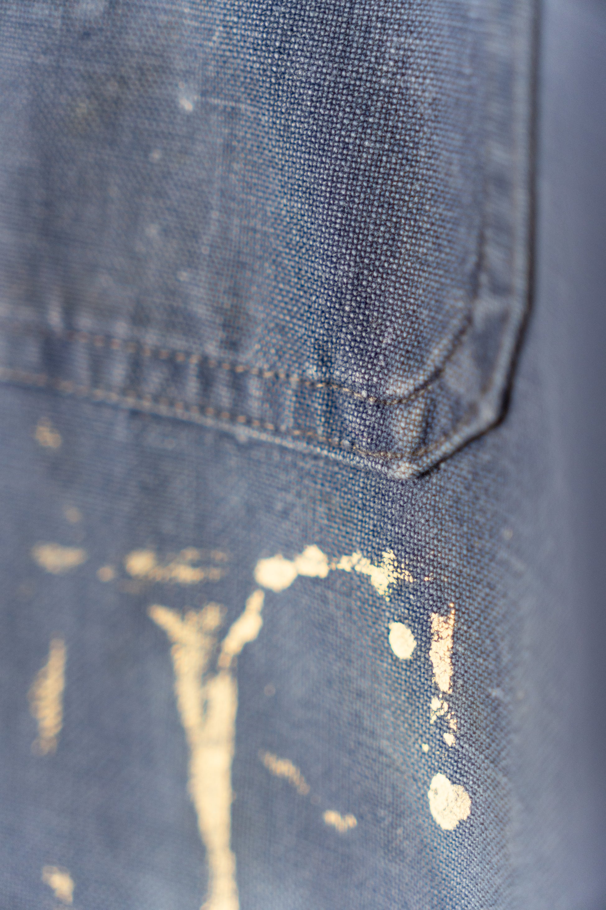 À l'époque, le molleton et le twill de coton étaient les tissus les plus couramment utilisés pour les vêtements de travail français, mais celui-ci est en « métis », un mélange rare de coton et de lin. La douceur et la légèreté du lin usé en font un tissu agréable à porter même en été.