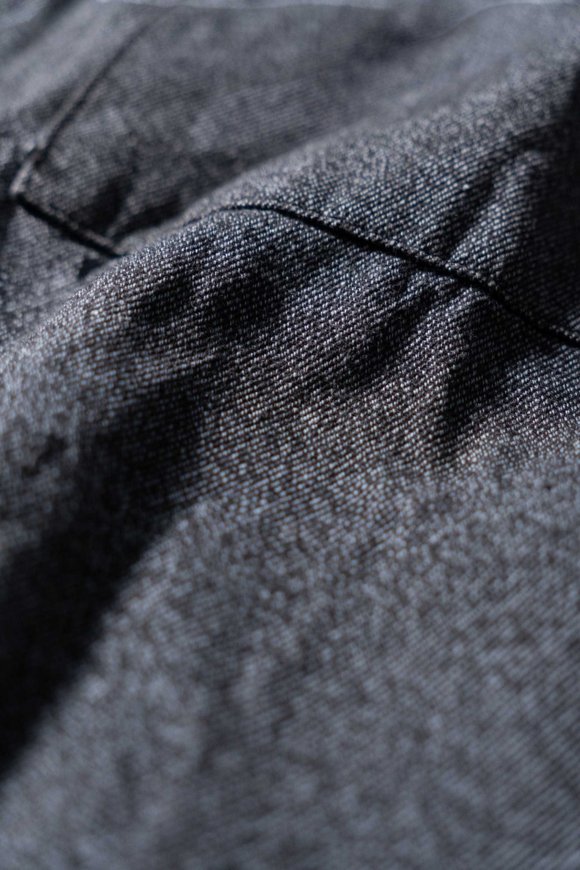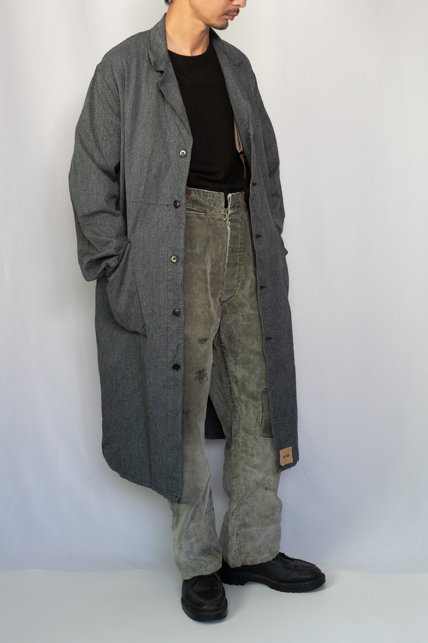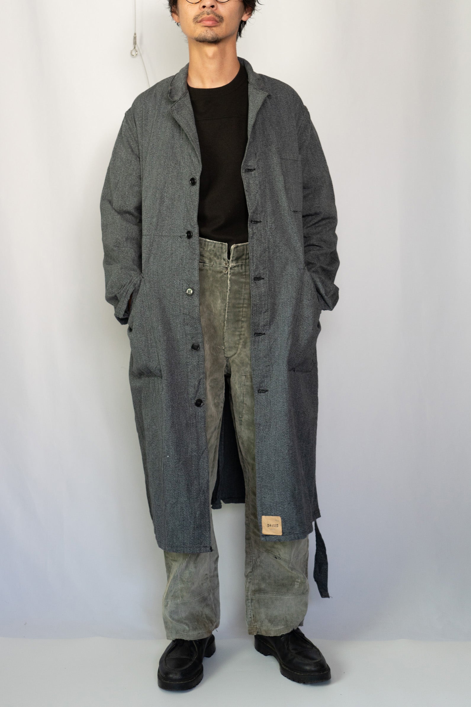 Manteau d'atelier en chambray noir des années 50-60. Deux articles en stock mort sont arrivés. Les artistes et les étudiants des écoles d'art de l'époque portaient ce « manteau d'atelier » afin de ne pas salir leurs vêtements. Il est confectionné en chambray noir, un coton caractérisé par son aspect marbré.