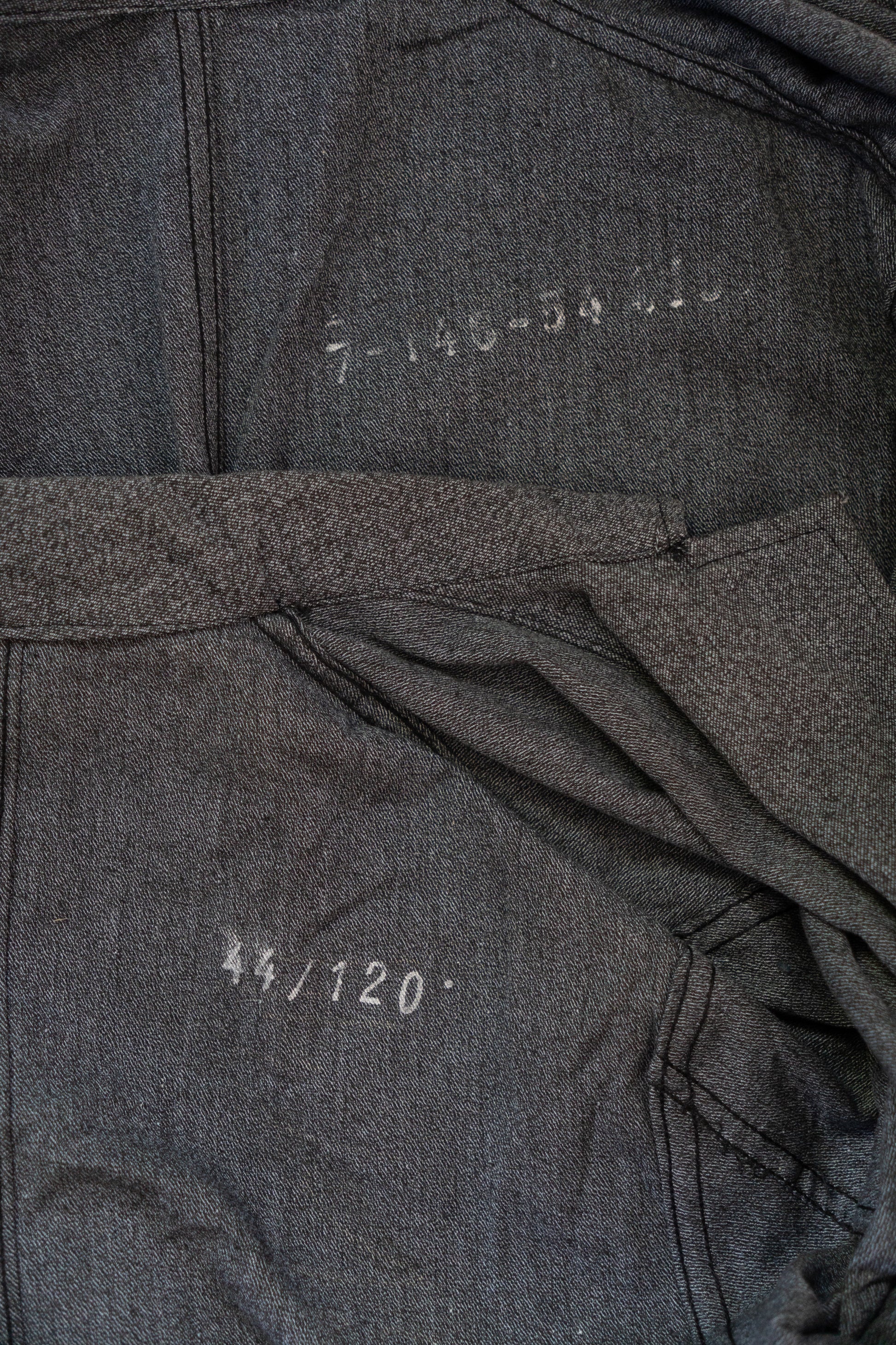 Manteau d'atelier en chambray noir des années 50-60, stock mort