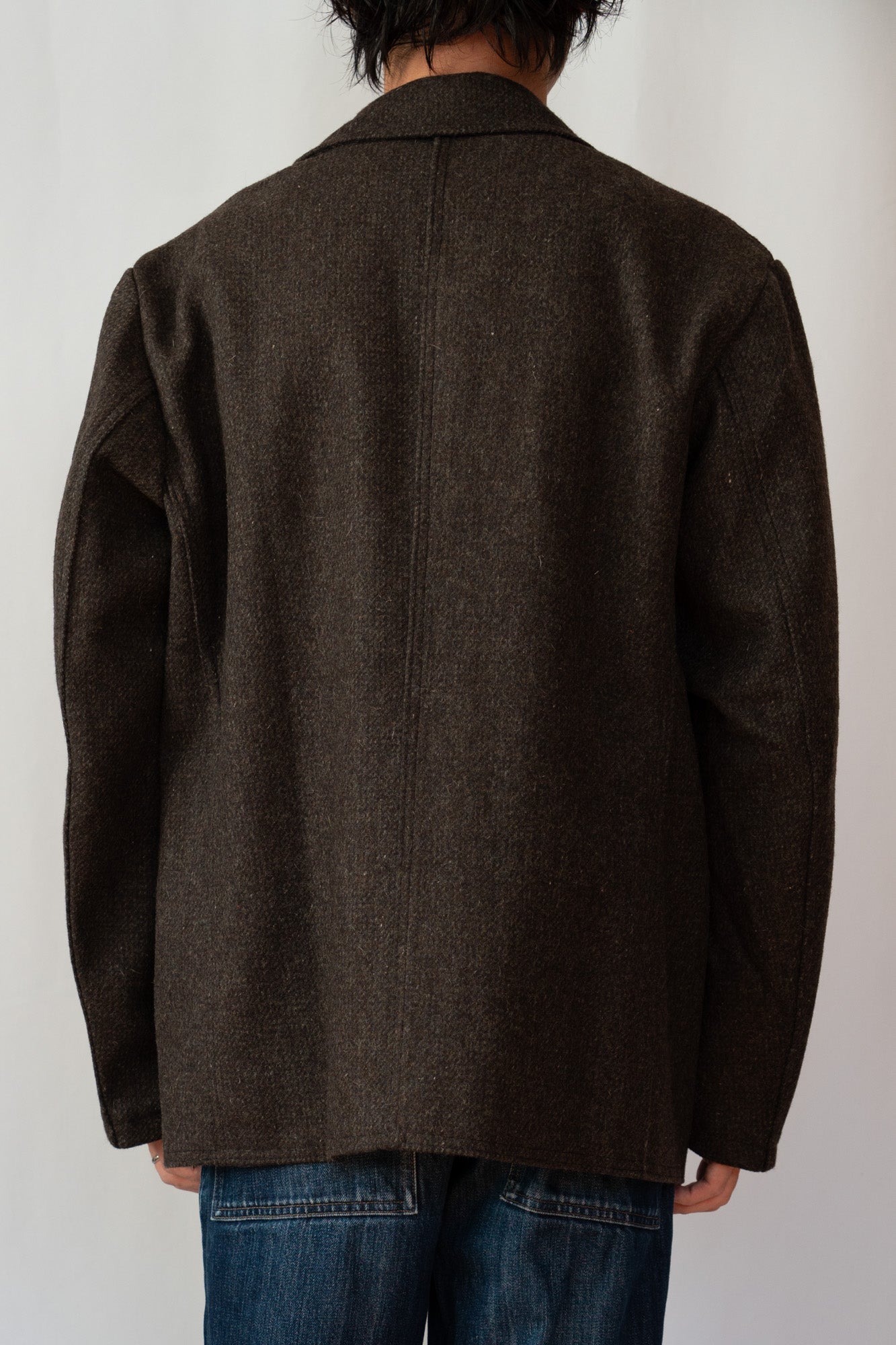 Il s'agit d'un tissu en laine au rendu délicat, composé d'un mélange de fils de différentes couleurs. Il s'agit d'un tissu simple, sans doublure. La plupart des modèles étaient gris, mais celui-ci est d'une couleur marron rare.