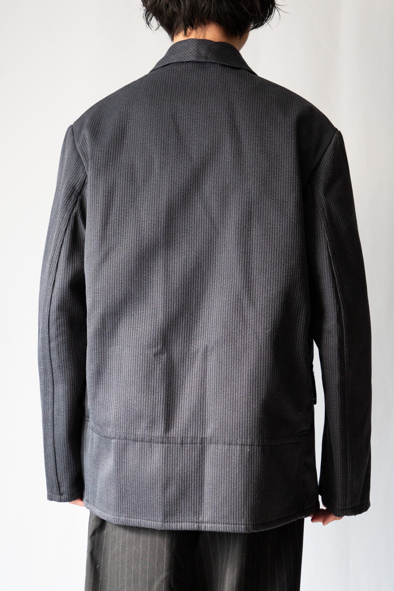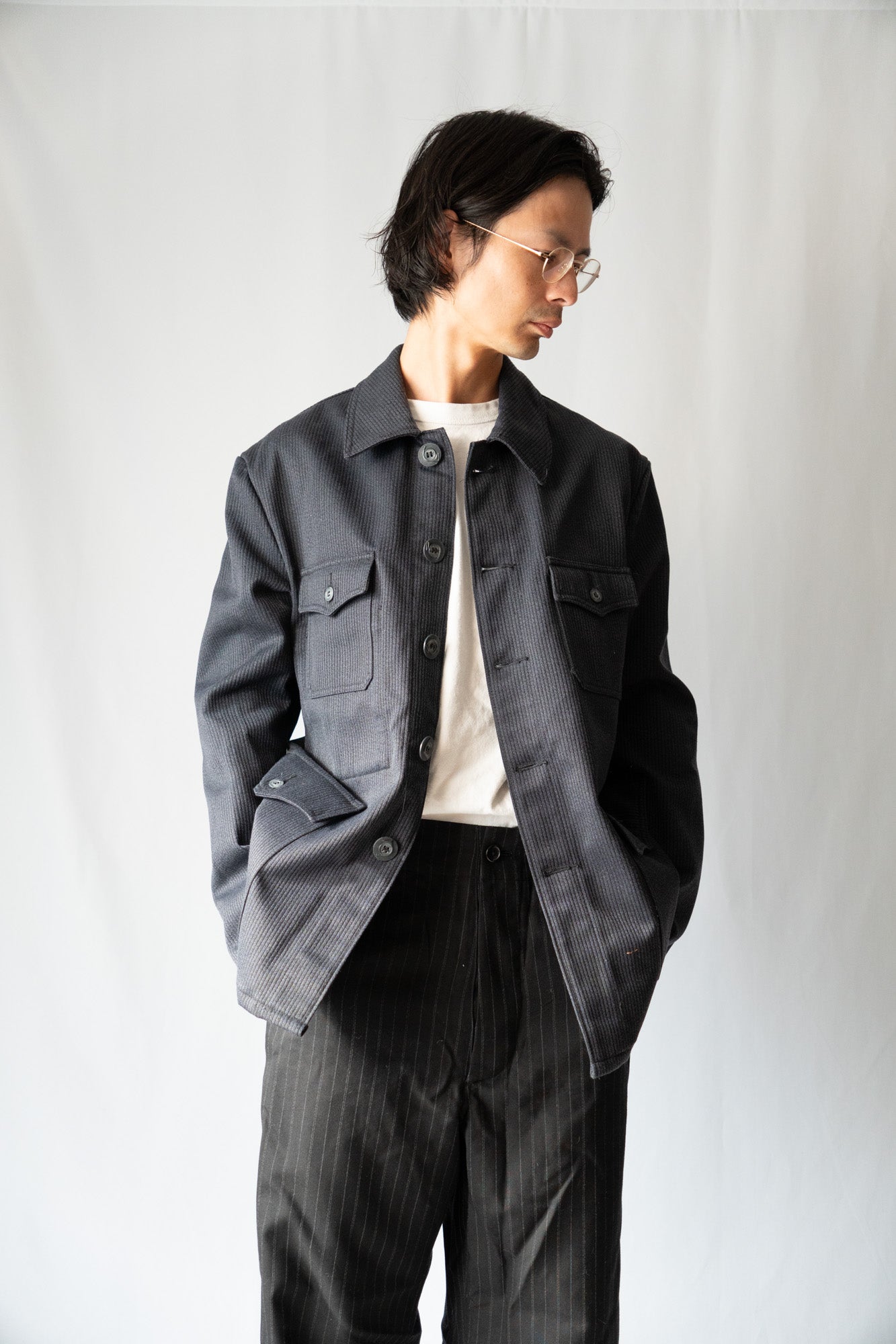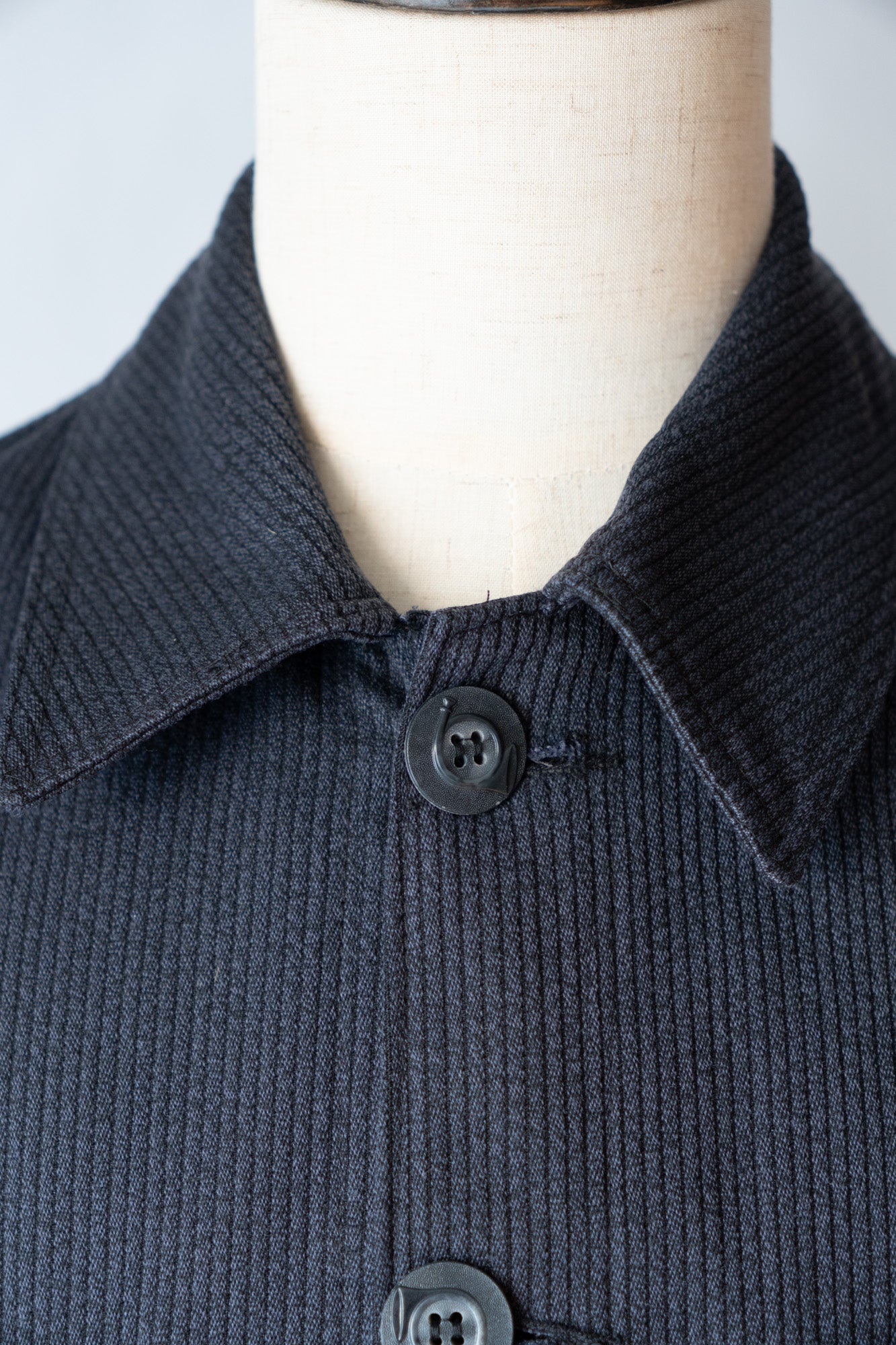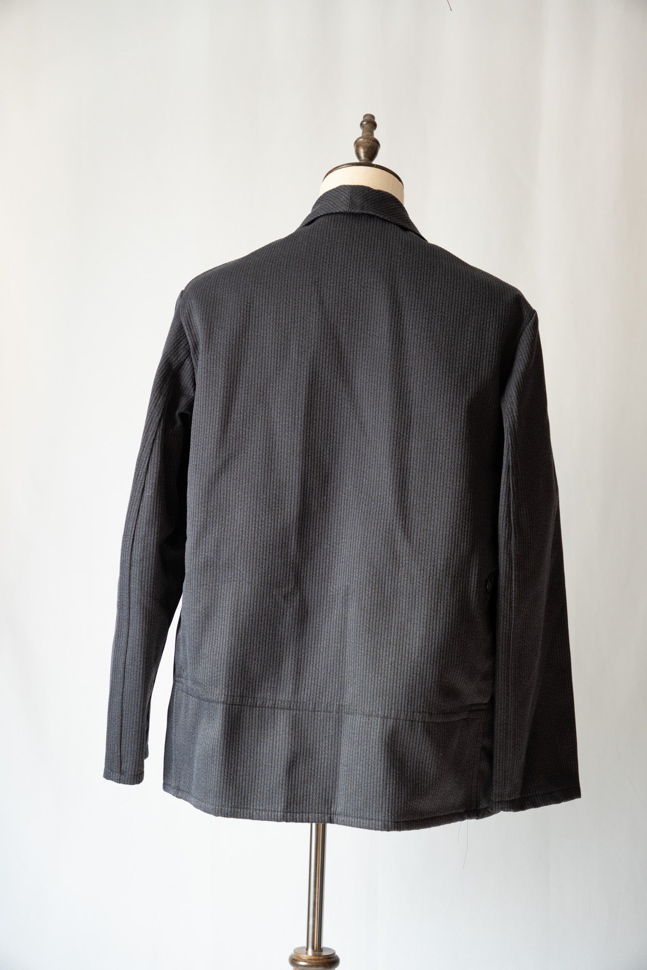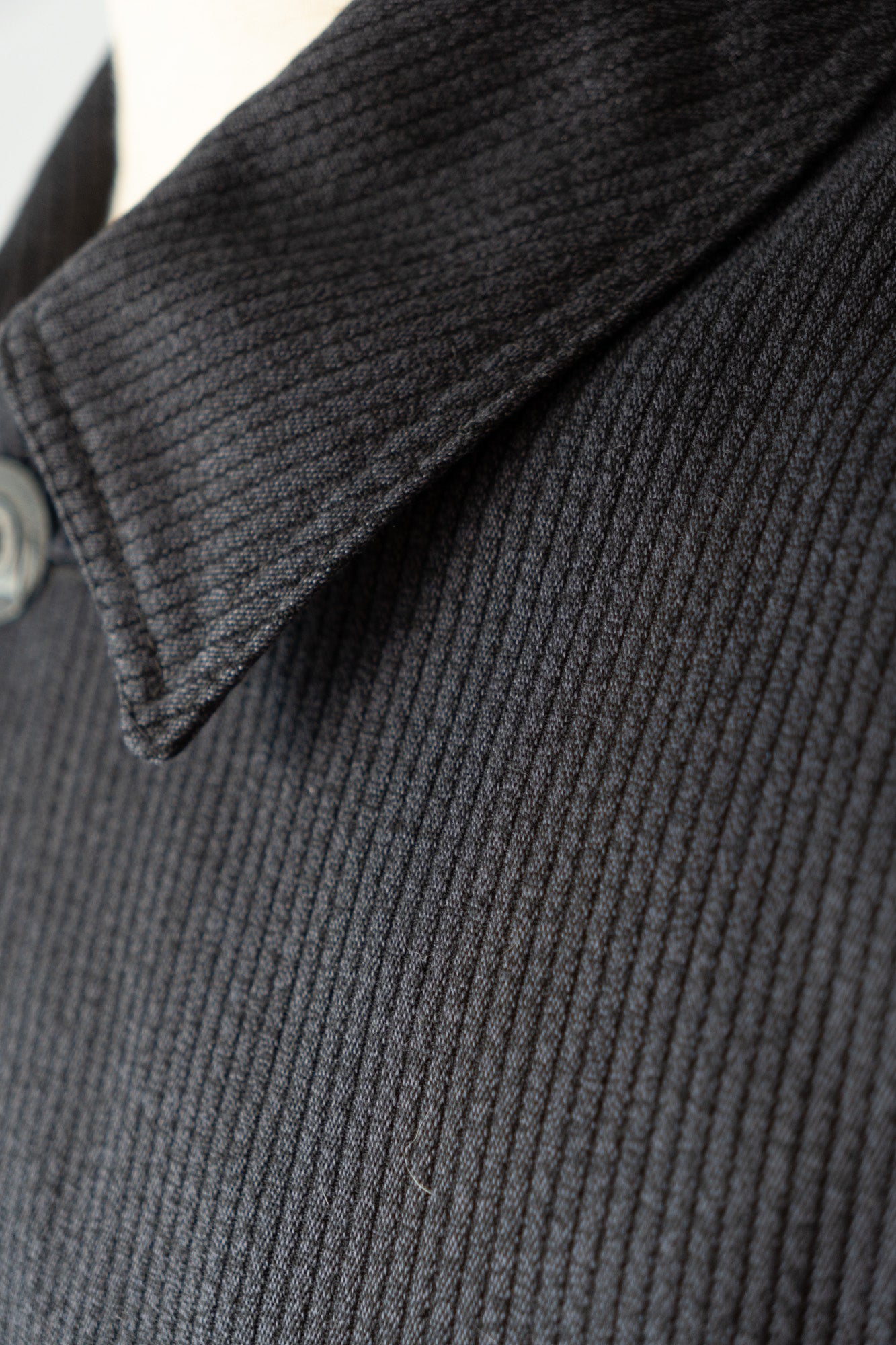 Les vestes sont généralement en piqué gris, mais celle-ci est en piqué de coton bleu-gris.