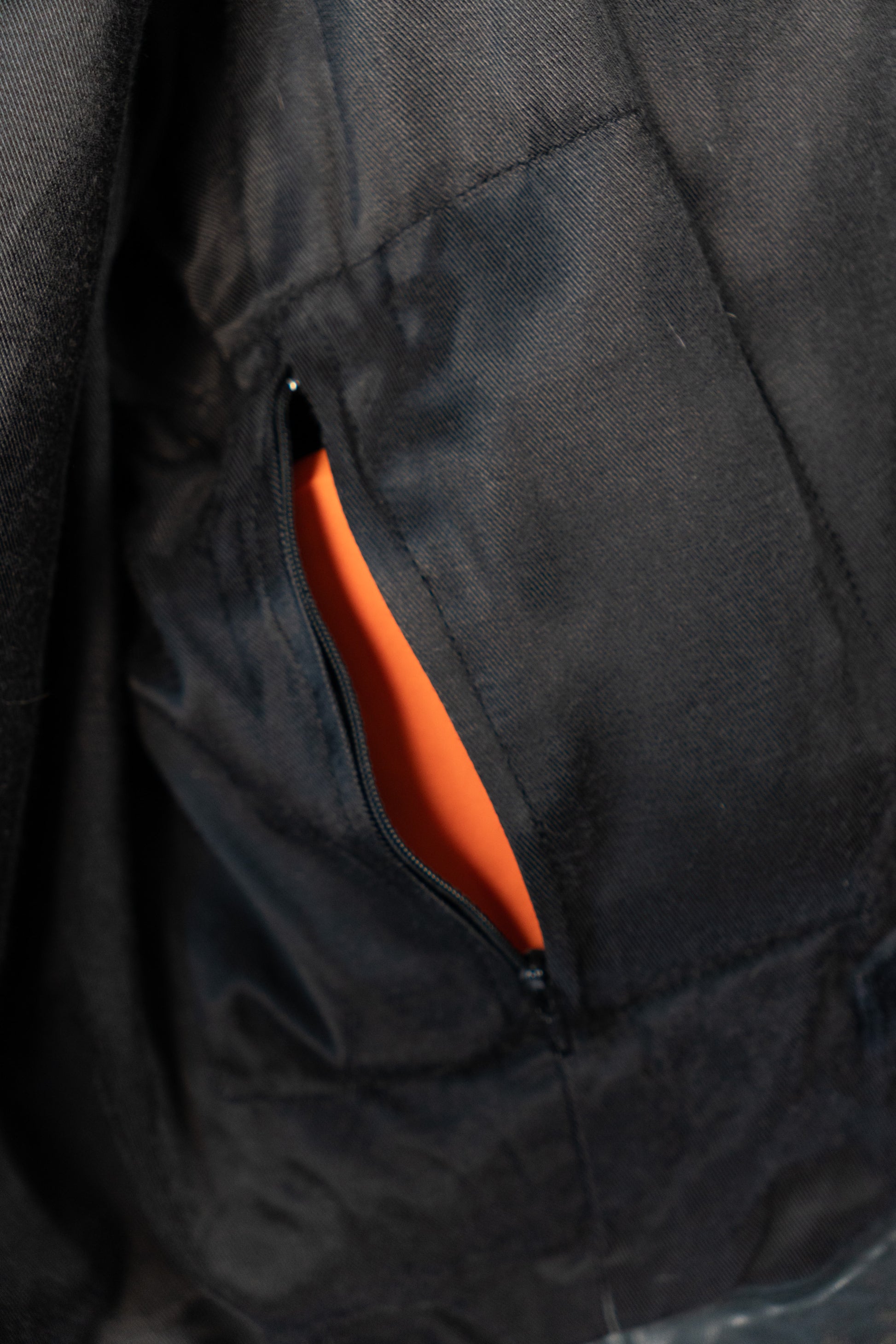 Il s'agit d'un article complet, avec une doublure amovible, un col en fourrure et un gilet de sauvetage pour augmenter les chances de survie en cas de crash.