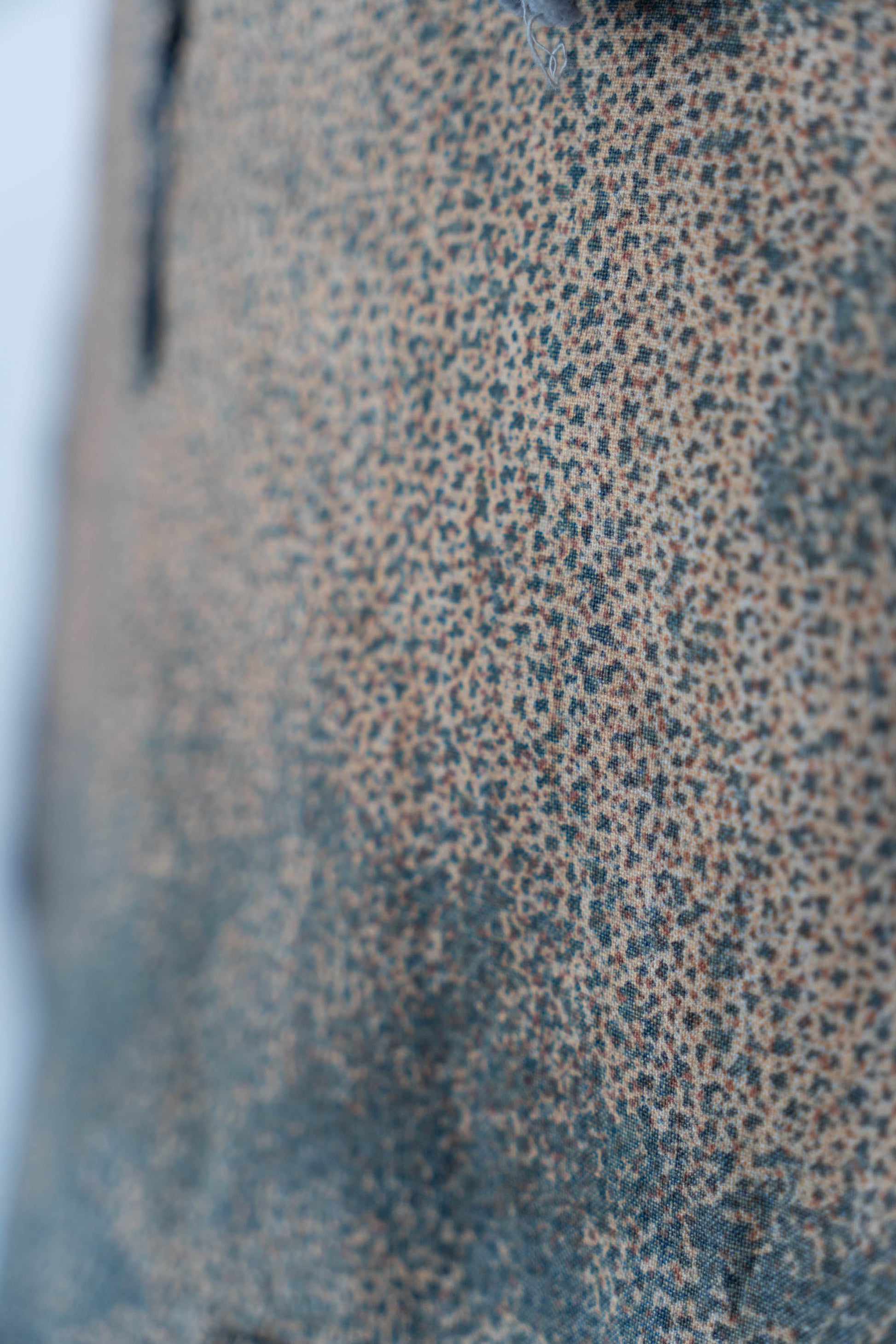 Il s'agit d'une veste de sniper à microcamouflage adoptée par l'ancienne armée yougoslave dans les années 70 et 80. Peu après la Seconde Guerre mondiale, la Yougoslavie, sous la présidence de Tito, a rompu avec le bloc soviétique et a choisi une position « non alignée », sans s'associer à l'Occident. À l'époque, le renforcement de la défense dans les zones montagneuses frontalières avec la Roumanie et l'Albanie était une priorité absolue, et des troupes ont été formées, principalement composées d'anciens partisans connaissant parfaitement le relief montagneux accidenté. Pour eux, il était urgent de trouver un camouflage plus efficace que les uniformes traditionnels, et il fallait notamment développer un nouveau motif efficace aussi bien de loin que de près. C'est dans ce contexte qu'est né le camouflage à micro-points, adopté dans les années 1970. Afin de s'adapter à divers types de reliefs et de climats, tels que les plateaux karstiques et les champs enneigés en hiver, des points minuscules ont été disséminés de manière à fragmenter visuellement la silhouette humaine et à estomper les contours, quelle que soit la distance. De plus, sa conception réversible lui conférait une grande polyvalence, permettant de s'adapter à deux environnements différents, la forêt et la neige, ce qui en a fait un équipement indispensable pour les forces spéciales et les tireurs d'élite.