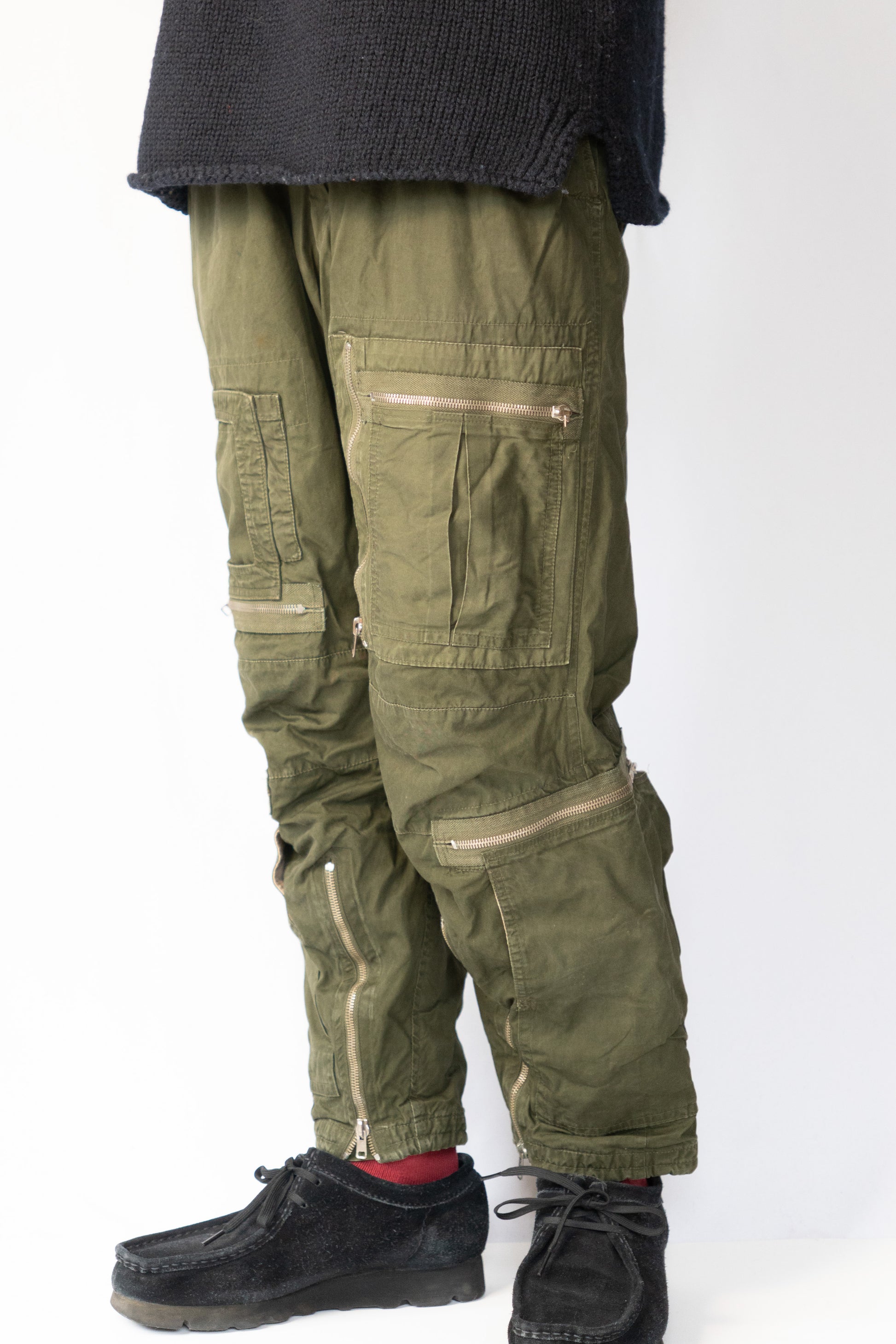 Les bretelles sont en caoutchouc et peuvent être réglées sur une large plage. La partie avant est dotée d'une double fermeture éclair, et les deux côtés sont équipés de poches fendues classiques ainsi que de poches surpantalon à fermeture éclair (poches traversantes). De plus, les deux cuisses sont dotées de poches à carte à fermeture velcro, ce qui permet au pilote de consulter facilement les cartes lorsqu'il est assis dans le cockpit.