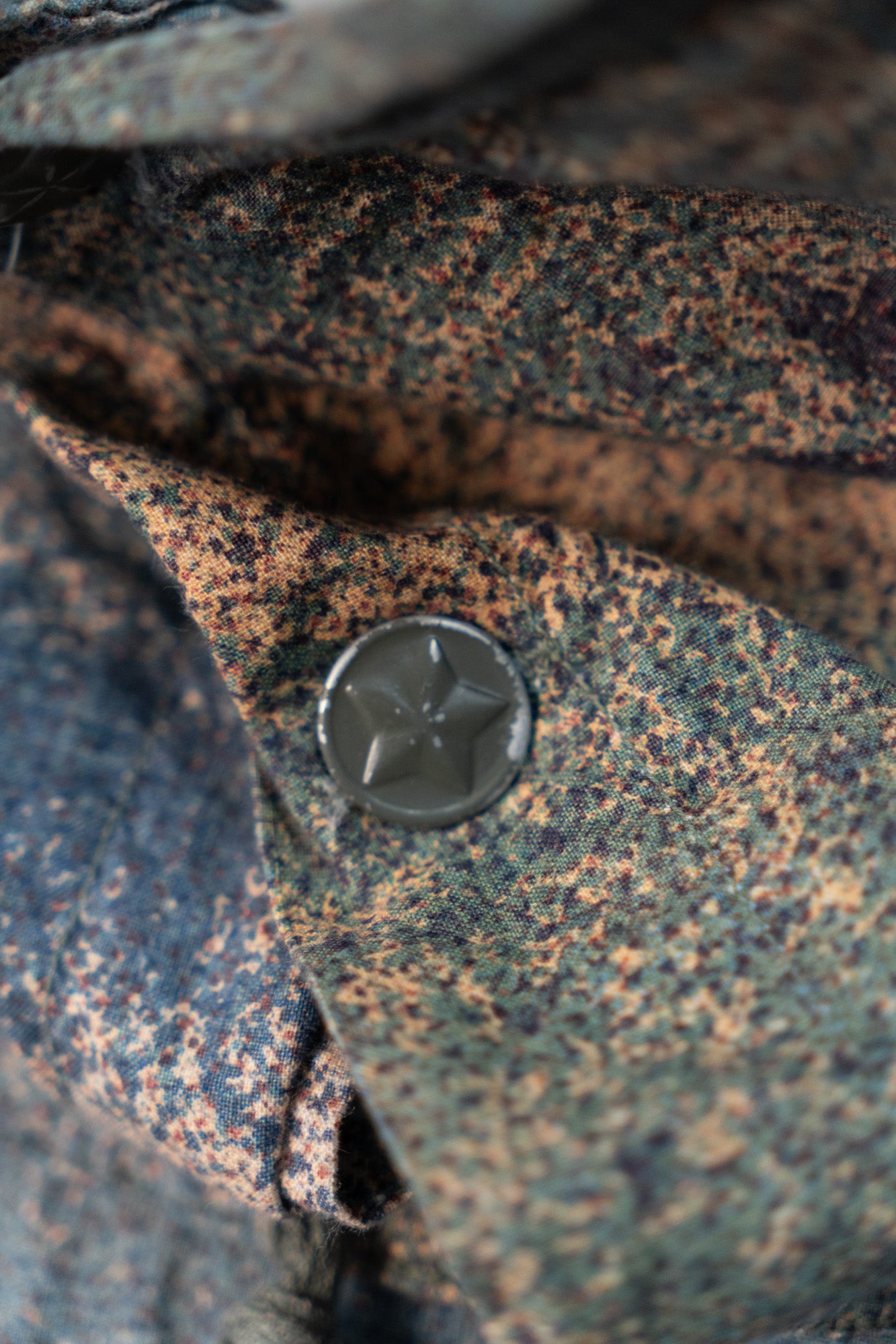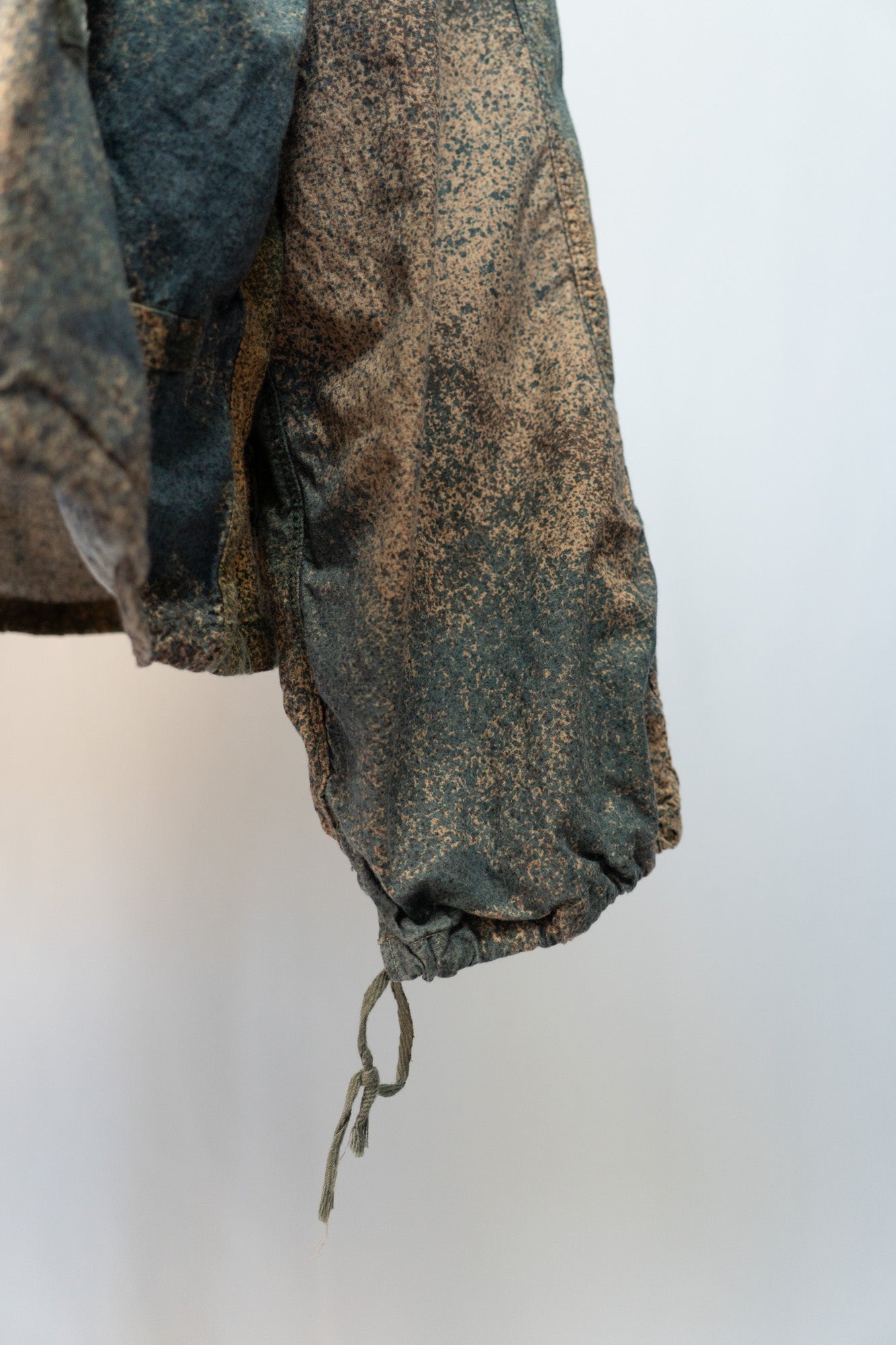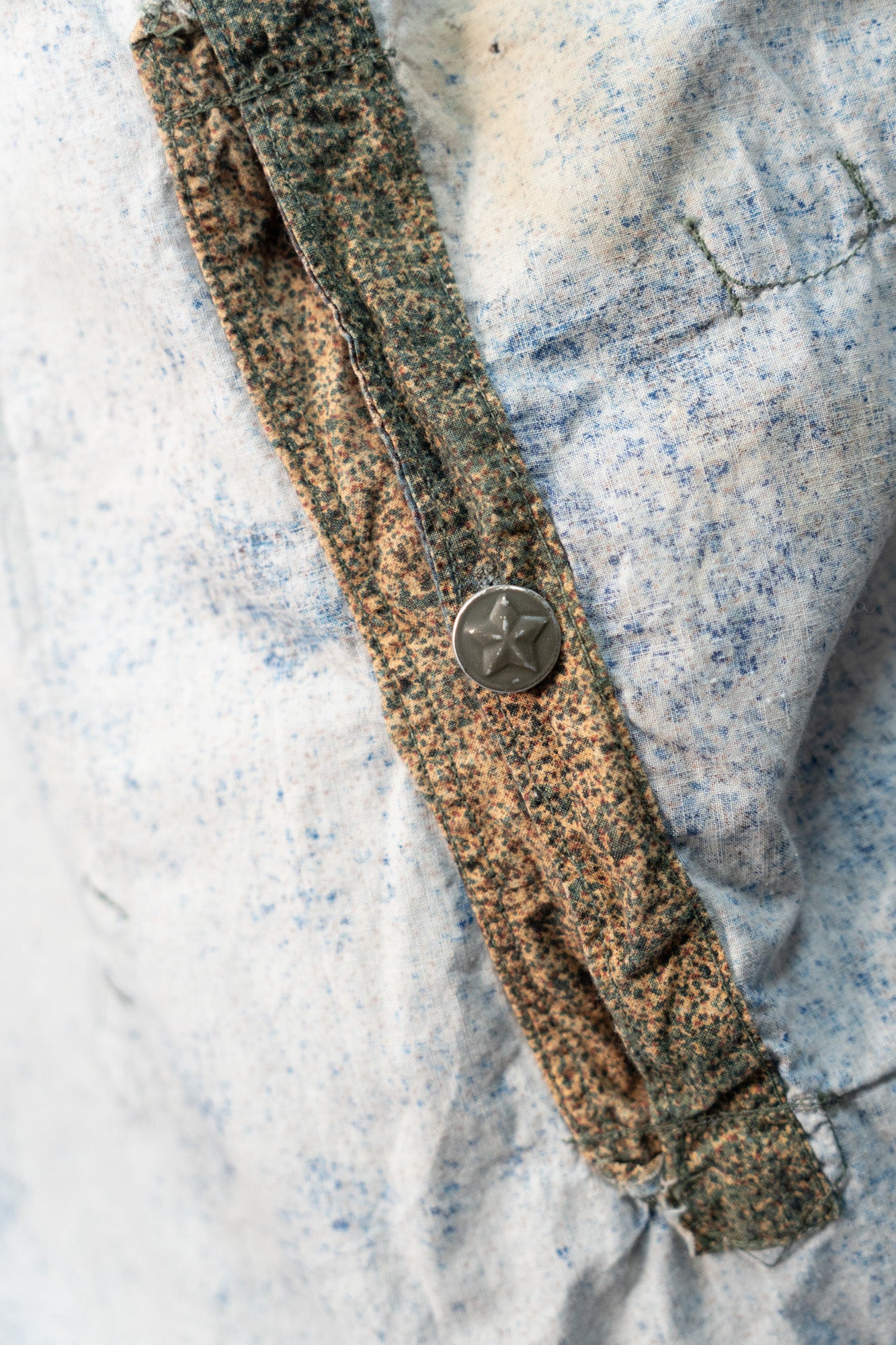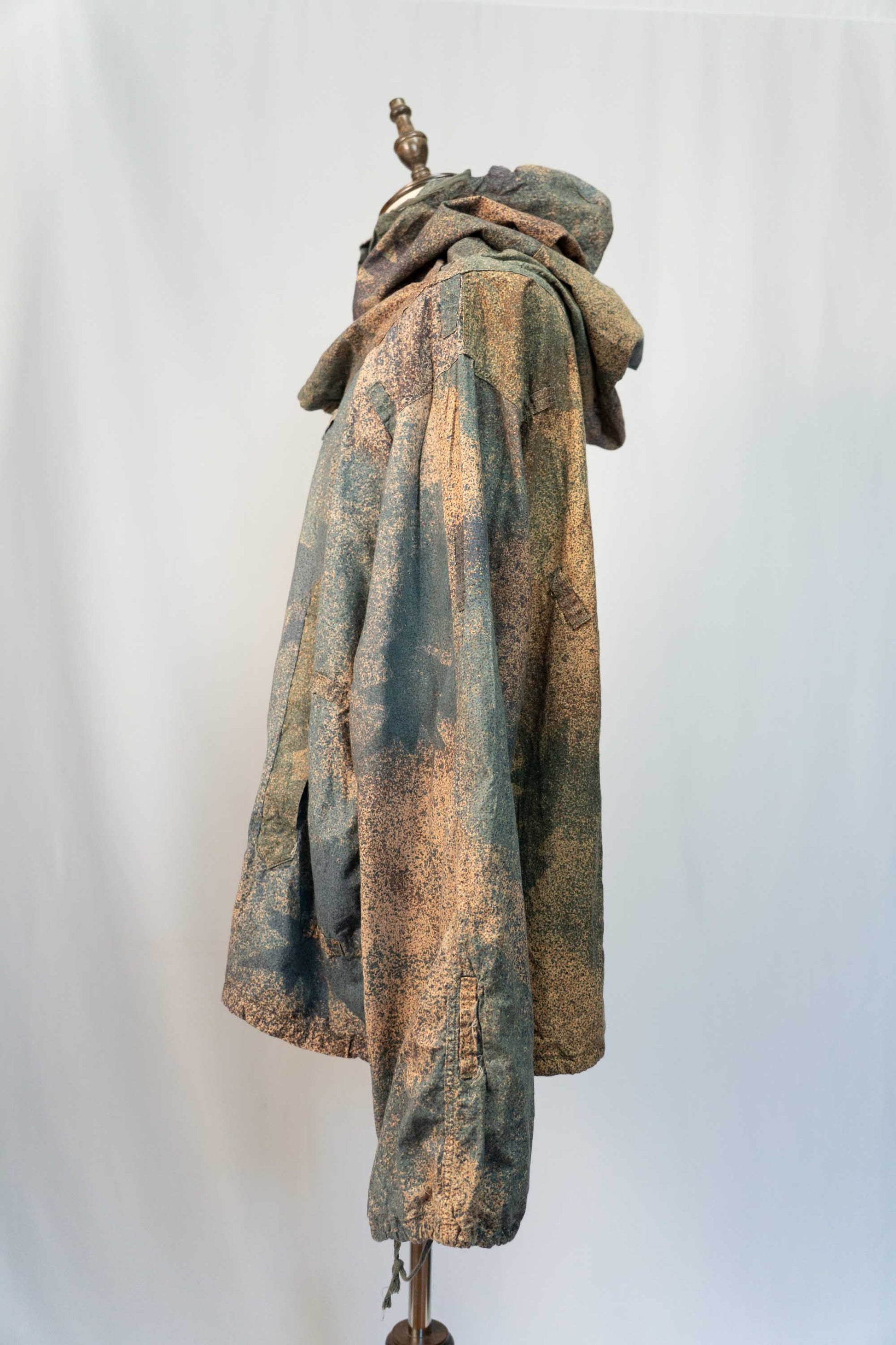 Avec son motif camouflage unique qui attire le regard, ce vêtement a été conçu pour se fondre dans les environnements montagneux et forestiers. Il est réversible, avec d'un côté un motif camouflage microdot vert et marron à petits pois, et de l'autre un motif blanc simple destiné à se fondre dans la neige.