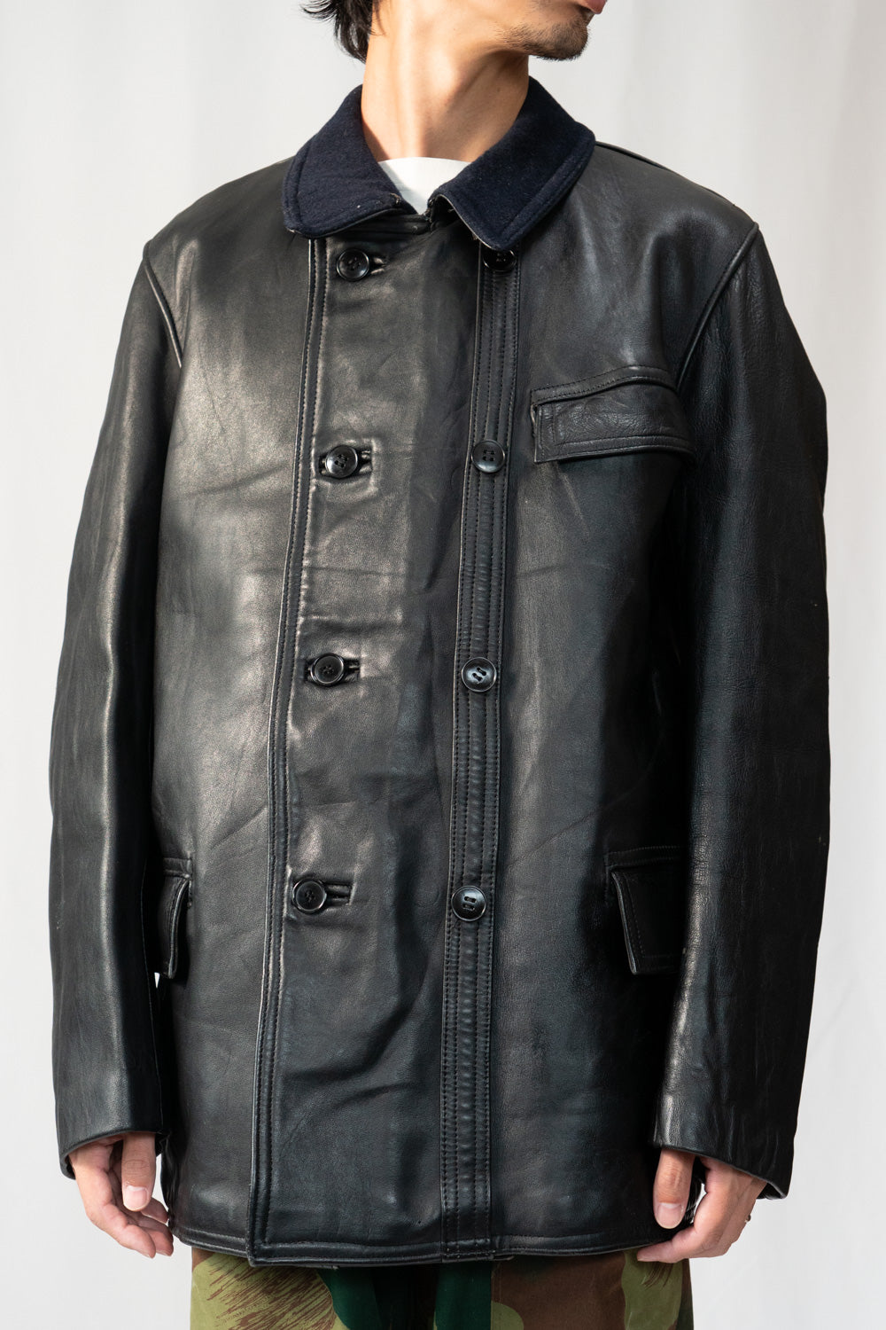 Veste en cuir vintage française Corbusier des années 40-50 « CNET » avec jugulaire
