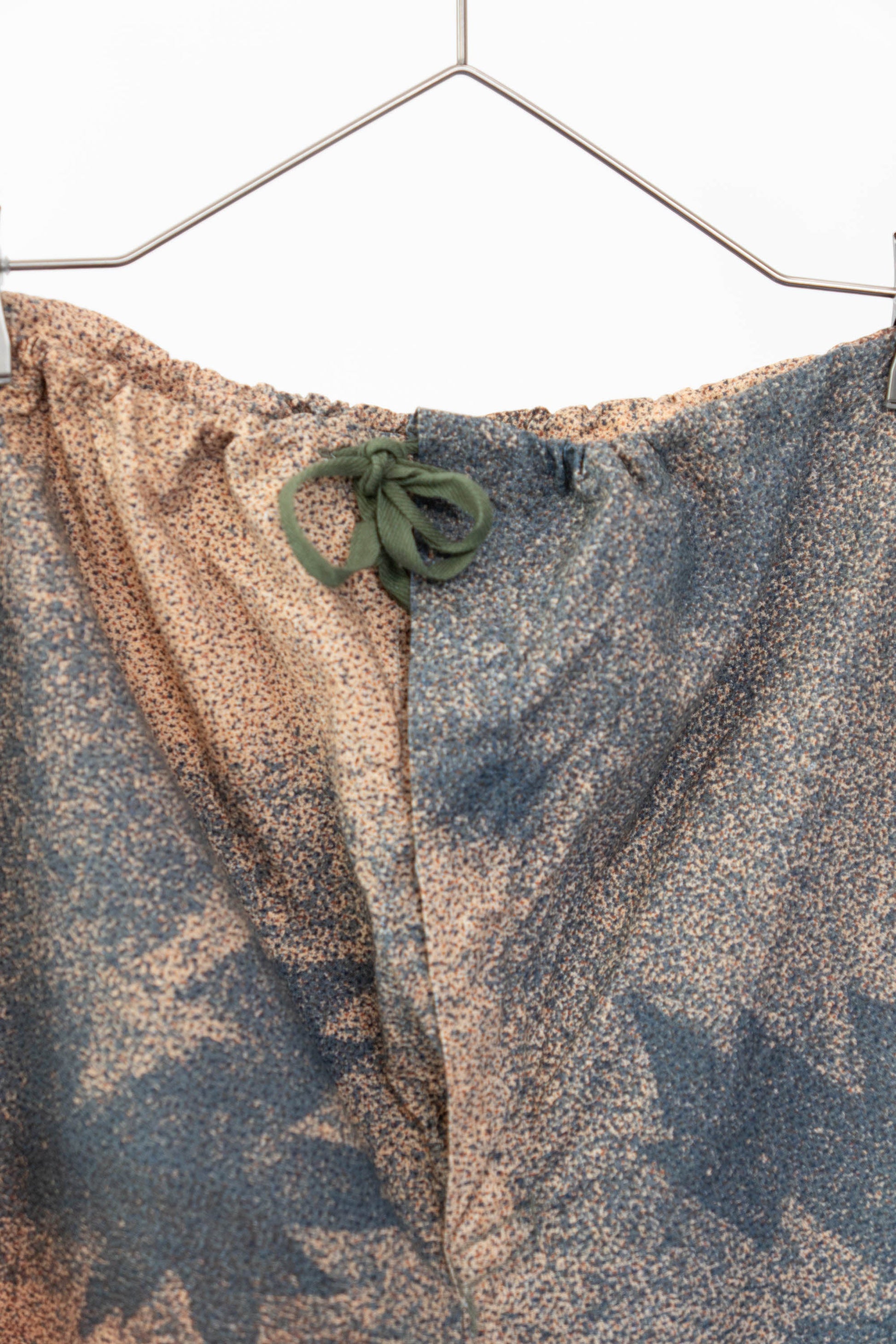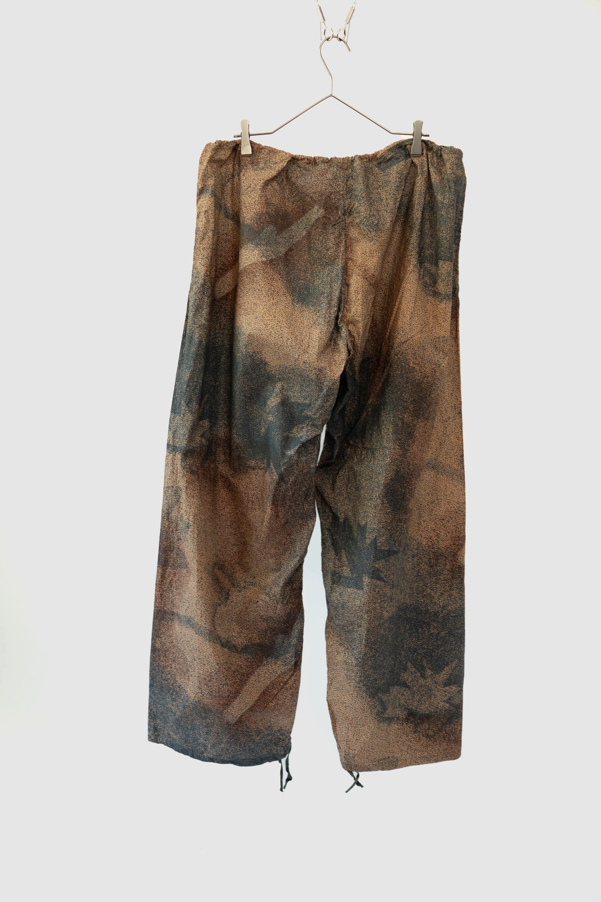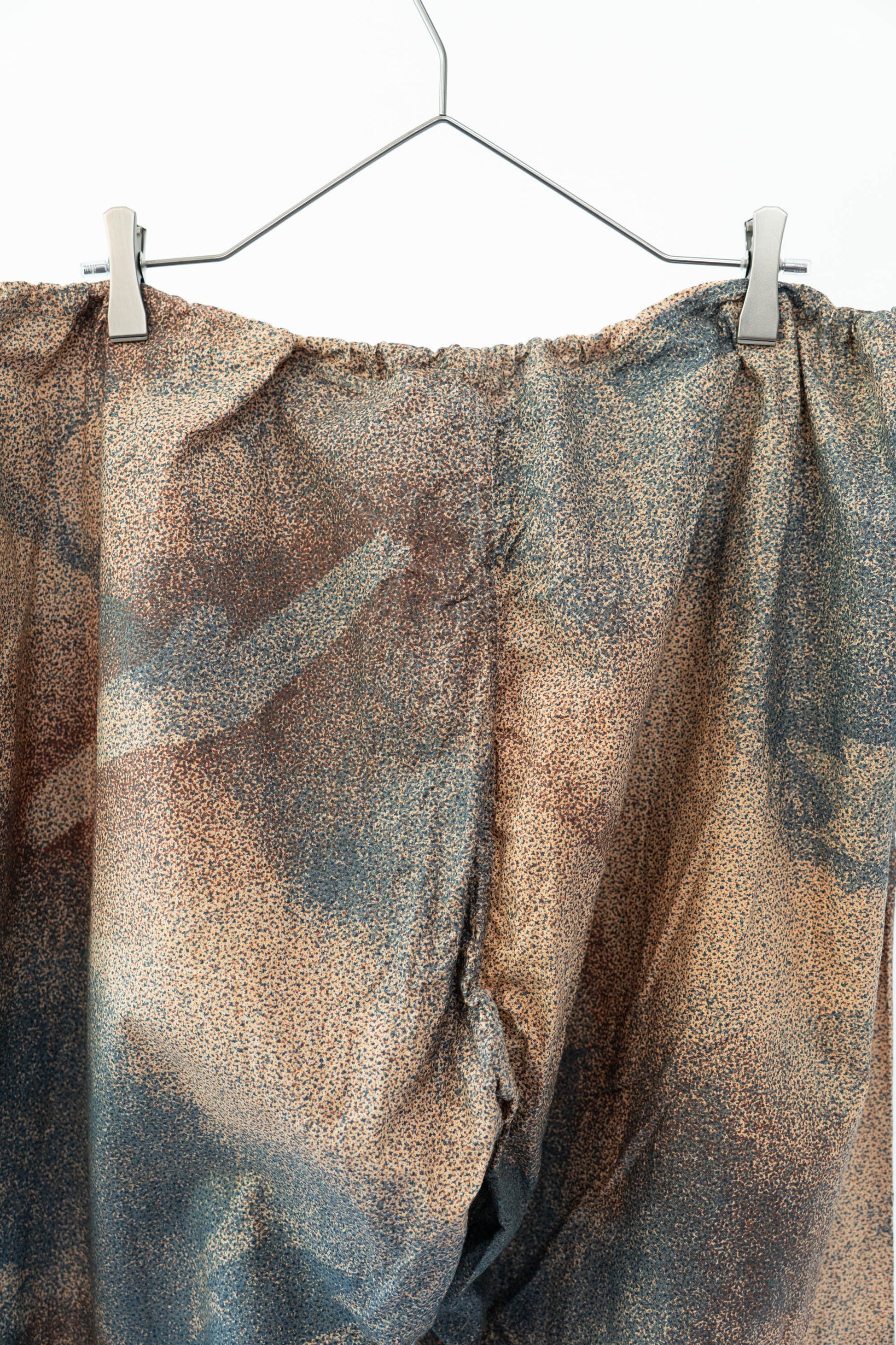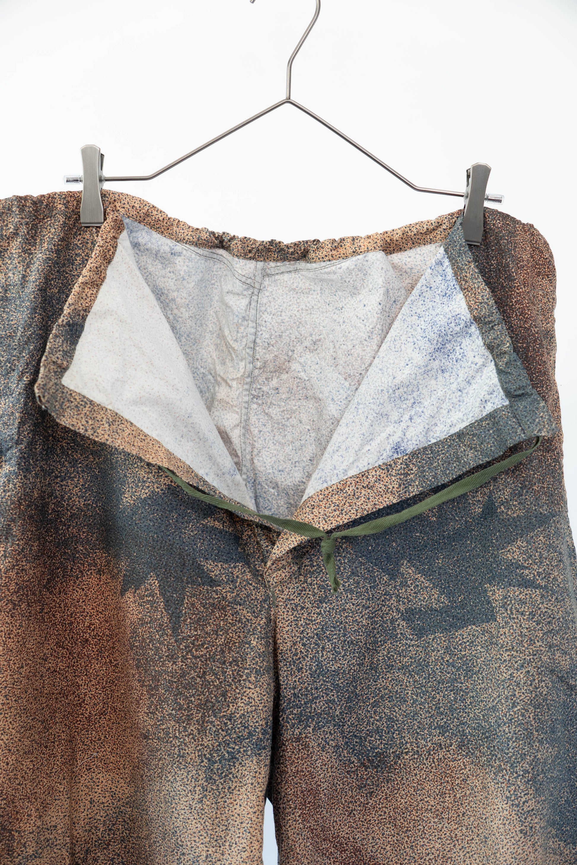 Son motif camouflage unique attire le regard, tout en se démarquant des motifs camouflage traditionnels pour offrir un style moderne et tendance. Le tissu utilisé est une popeline de coton fine. Léger et respirant, il est très agréable à porter au printemps et en été. Conçu à l'origine pour être porté par-dessus un uniforme de combat, ce pantalon est doté d'une entrejambe et de poches à fentes. Sa coupe ample et oversize est également très séduisante. Son motif unique en fait un élément phare de votre garde-robe et lui permet de s'intégrer parfaitement à la mode contemporaine, bien au-delà du cadre des vêtements militaires.