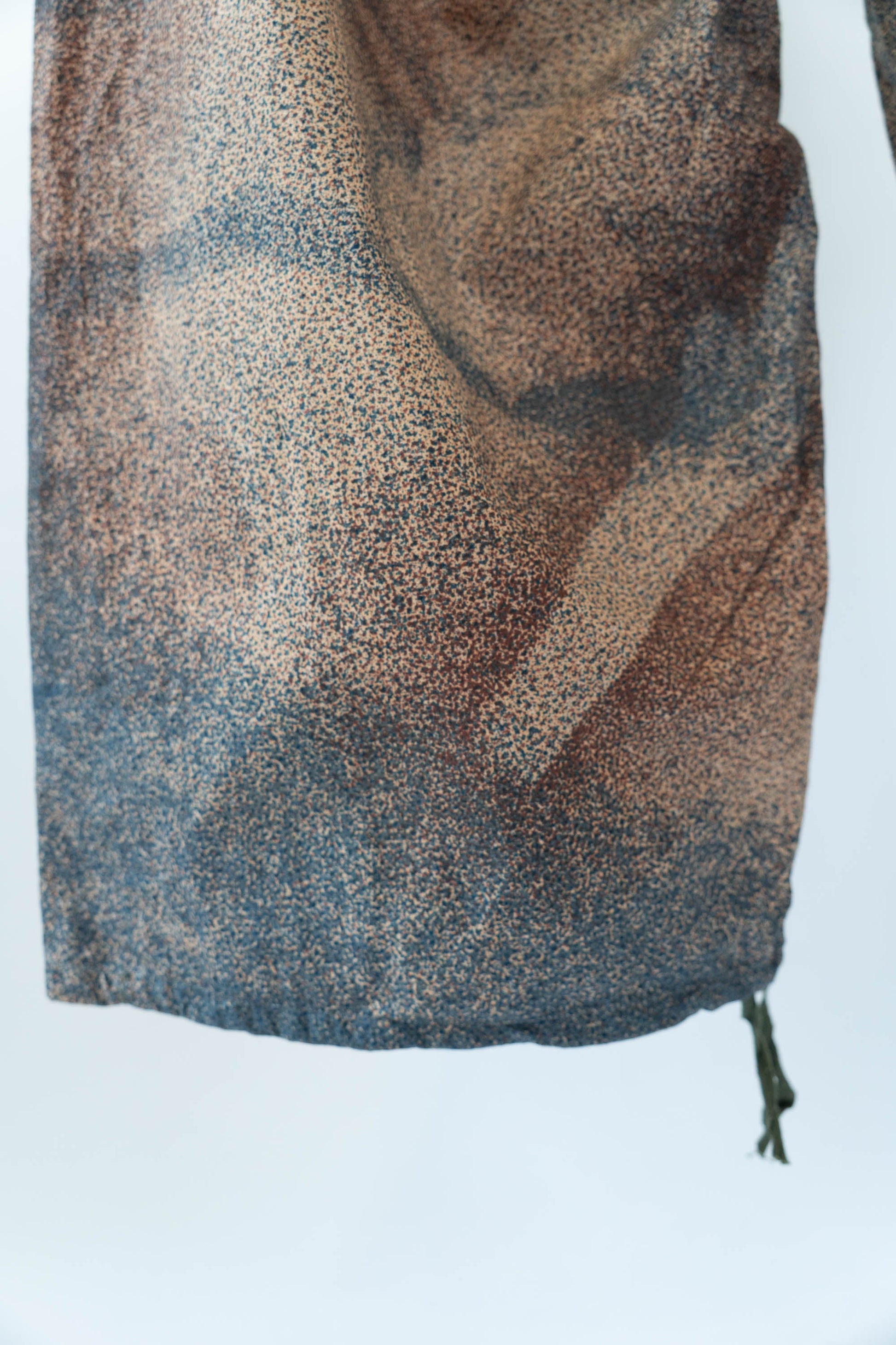 Il s'agit d'un pantalon de sniper à microcamouflage adopté par l'ancienne armée yougoslave dans les années 70 et 80. Peu après la Seconde Guerre mondiale, la Yougoslavie, sous la présidence de Tito, a rompu avec le camp soviétique et a choisi une position « non alignée » sans s'associer à l'Occident. À l'époque, le renforcement de la défense dans les zones montagneuses limitrophes de la Roumanie et de l'Albanie était une priorité absolue, et des troupes ont été constituées, principalement composées d'anciens partisans connaissant parfaitement le relief montagneux difficile. Pour eux, il était urgent d'améliorer les performances de camouflage des uniformes traditionnels, qui étaient insuffisantes, et il fallait notamment développer un nouveau motif efficace aussi bien de loin que de près. C'est dans ce contexte qu'est né le camouflage à micro-points, adopté dans les années 1970. Afin de s'adapter à divers types de reliefs et de climats, tels que les plateaux karstiques et les champs enneigés en hiver, des points minuscules ont été disséminés de manière à fragmenter visuellement la silhouette humaine et à estomper les contours, quelle que soit la distance. De plus, sa conception réversible lui conférait une grande polyvalence, permettant de s'adapter à deux environnements différents, la forêt et la neige, ce qui en a fait un équipement indispensable pour les forces spéciales et les tireurs d'élite.