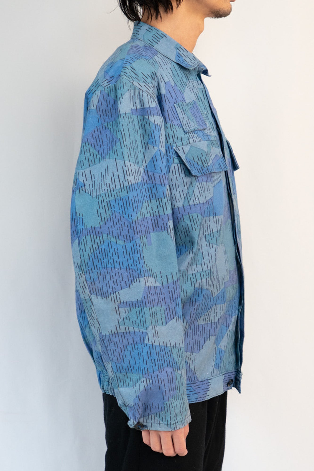 Ce motif camouflage unique, à dominante bleue, est inspiré du camouflage Splinter développé par la Wehrmacht allemande, mais a été adapté de manière originale. Il s'agit d'un motif camouflage unique en son genre, mais dont les couleurs s'harmonisent très bien avec les autres vêtements. Utilisé par des organisations restreintes sous le régime communiste, il s'agit d'un vêtement précieux dont il existe peu d'exemplaires.