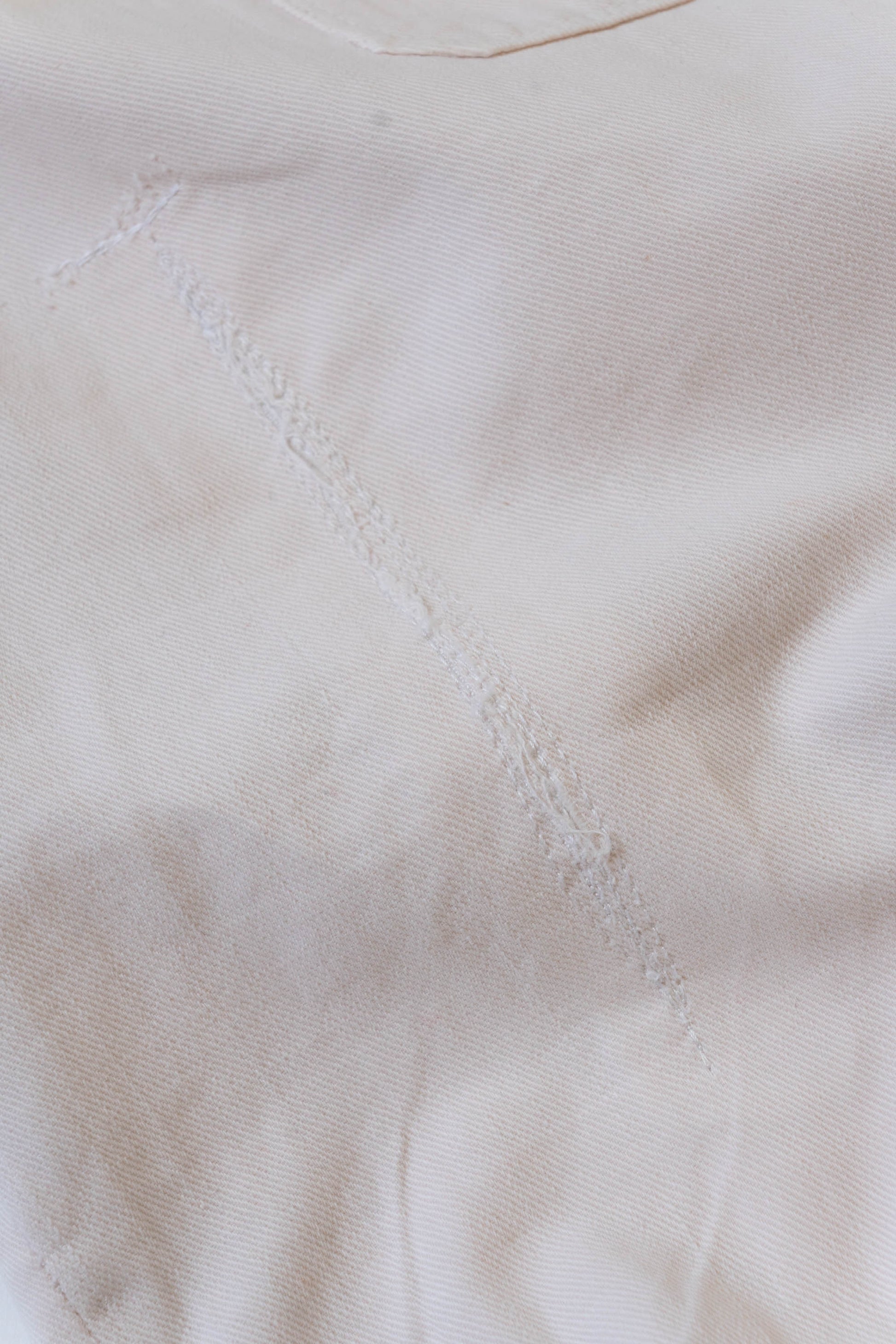 Cet article est l'un des rares survivants. Le tissu en twill, léger mais tissé de manière dense, présente une densité adéquate pour repousser le vent marin, et les détails caractéristiques du modèle précédent, tels que le cordon de serrage à l'ourlet et les boutons de bretelles, sont intacts. Ce vêtement de travail, qui accompagnait le quotidien des matelots, témoigne d'une période de transition marquée par la pénurie de matériaux et les innovations techniques en temps de guerre. Nous vous invitons à découvrir cette pièce unique, qui allie contexte historique et rareté, et qui constitue un objet de collection de grande valeur.