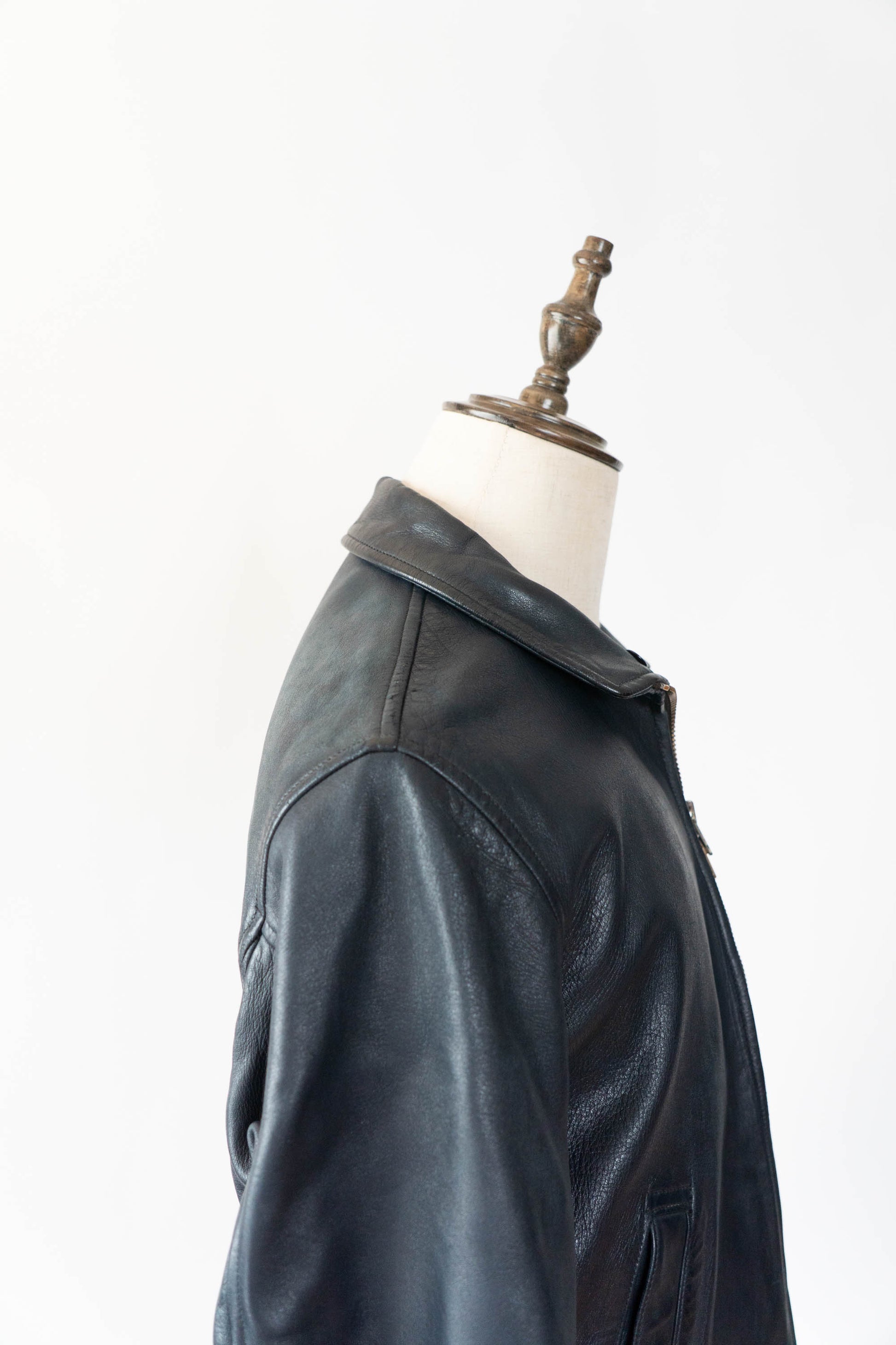 フランス製シープスキンは、しなやかで肌理が細かくもっちりと吸い付くような着心地。レザージャケット特有の硬さや重さが少なく、ヴィンテージレザーに馴染みのない方にも着用していただけます。